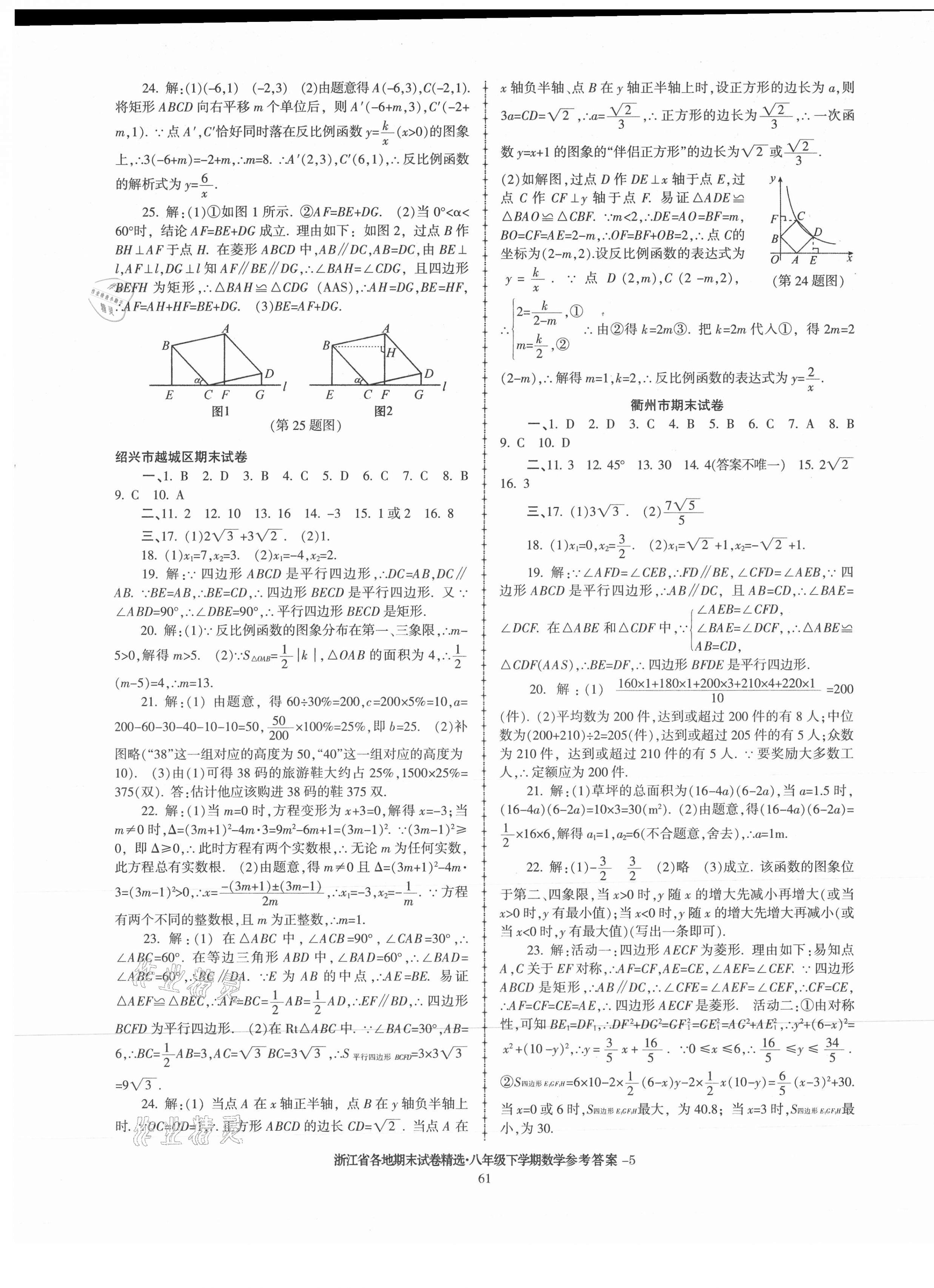 注:目前有些书本章节名称可能整理的还不是很完善,但都是按照顺序排列的,请同学们按照顺序仔细查找。练习册 2021年浙江省各地期末试卷精选八年级数学下册浙教版 答案主要是用来给同学们做完题方便对答案用的,请勿直接抄袭。