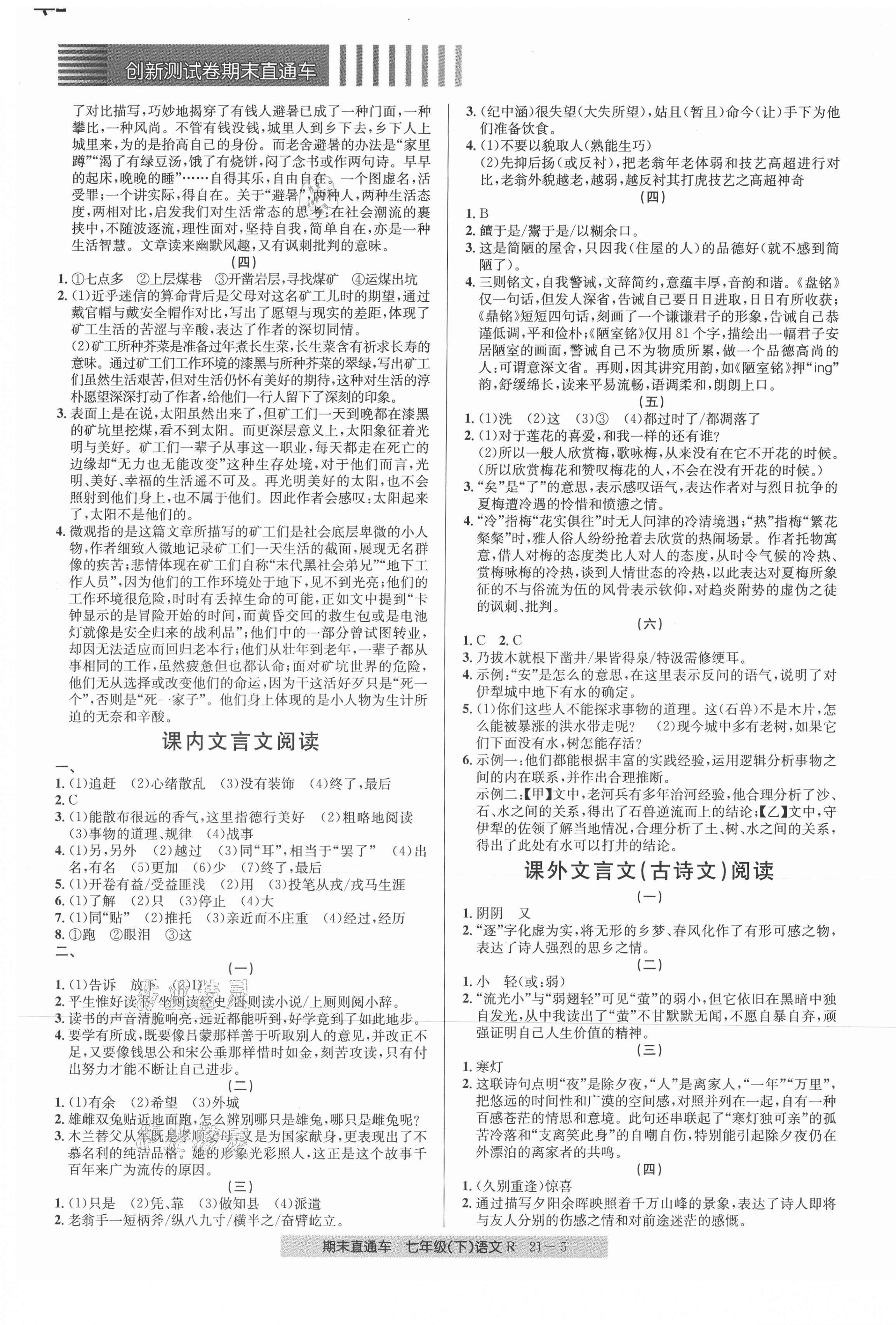 注:目前有些书本章节名称可能整理的还不是很完善,但都是按照顺序排列的,请同学们按照顺序仔细查找。练习册 2021年创新测试卷期末直通车七年级语文下册人教版 答案主要是用来给同学们做完题方便对答案用的,请勿直接抄袭。