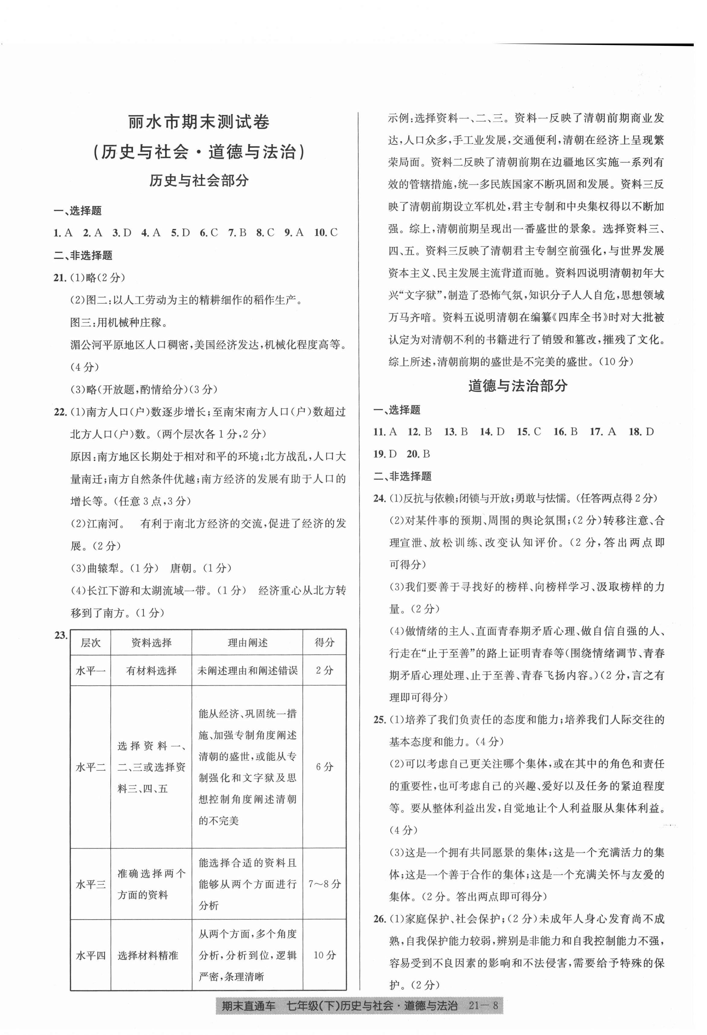 2021年创新测试卷期末直通车七年级历史与社会道德与法治下册人教版