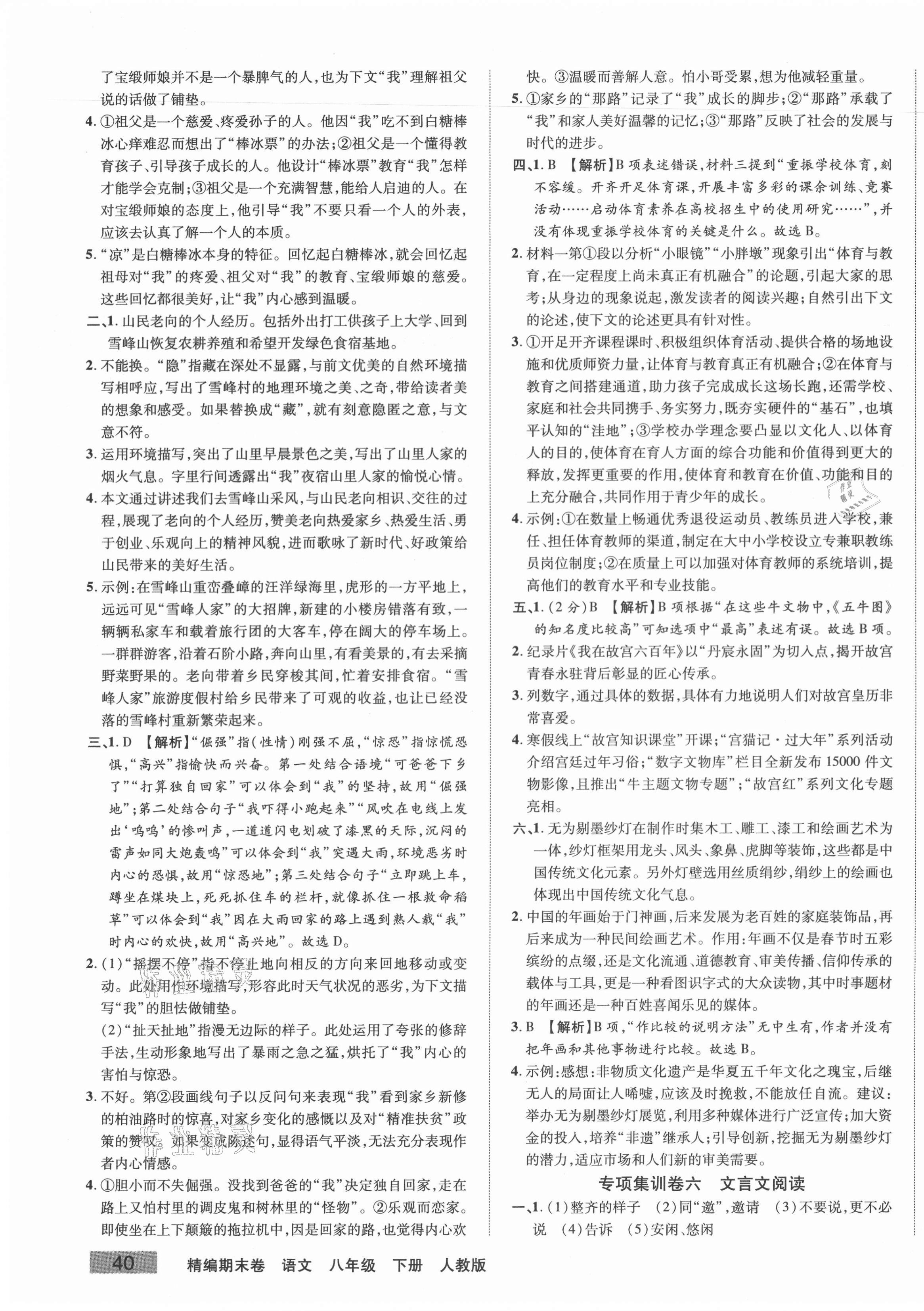 注:目前有些书本章节名称可能整理的还不是很完善,但都是按照顺序排列的,请同学们按照顺序仔细查找。练习册 2021年精编期末卷八年级语文下册人教版安徽专版 答案主要是用来给同学们做完题方便对答案用的,请勿直接抄袭。