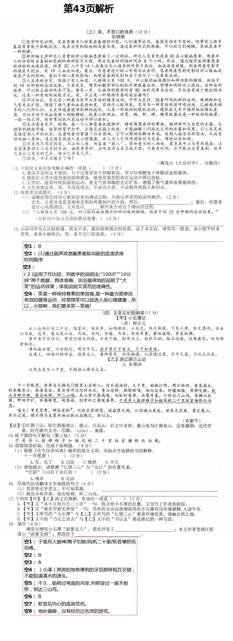 注:目前有些书本章节名称可能整理的还不是很完善,但都是按照顺序排列的,请同学们按照顺序仔细查找。练习册 2021年赢在语文八年级下册人教版 答案主要是用来给同学们做完题方便对答案用的,请勿直接抄袭。