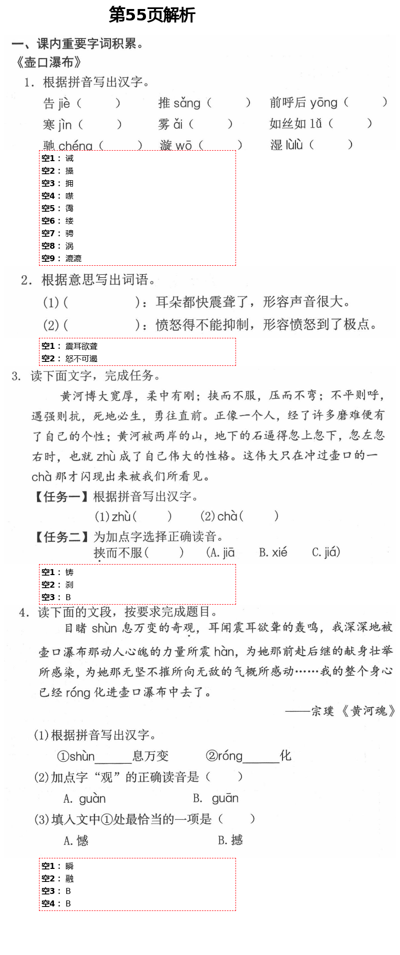 注:目前有些书本章节名称可能整理的还不是很完善,但都是按照顺序排列的,请同学们按照顺序仔细查找。练习册 2021年赢在语文八年级下册人教版 答案主要是用来给同学们做完题方便对答案用的,请勿直接抄袭。