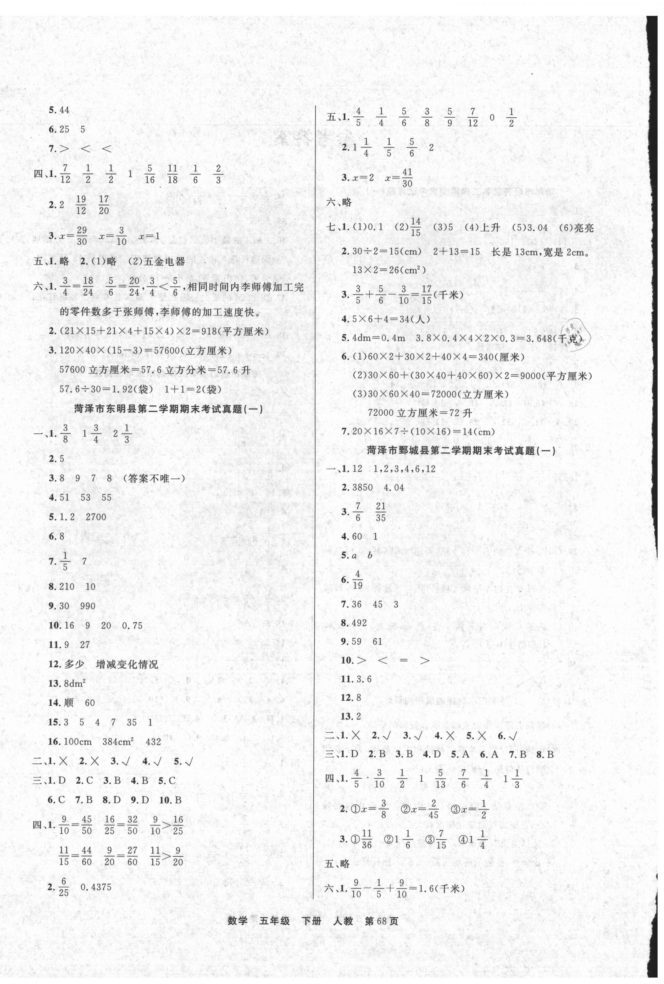 2021年金牌期末好卷五年级数学下册人教版菏泽专版