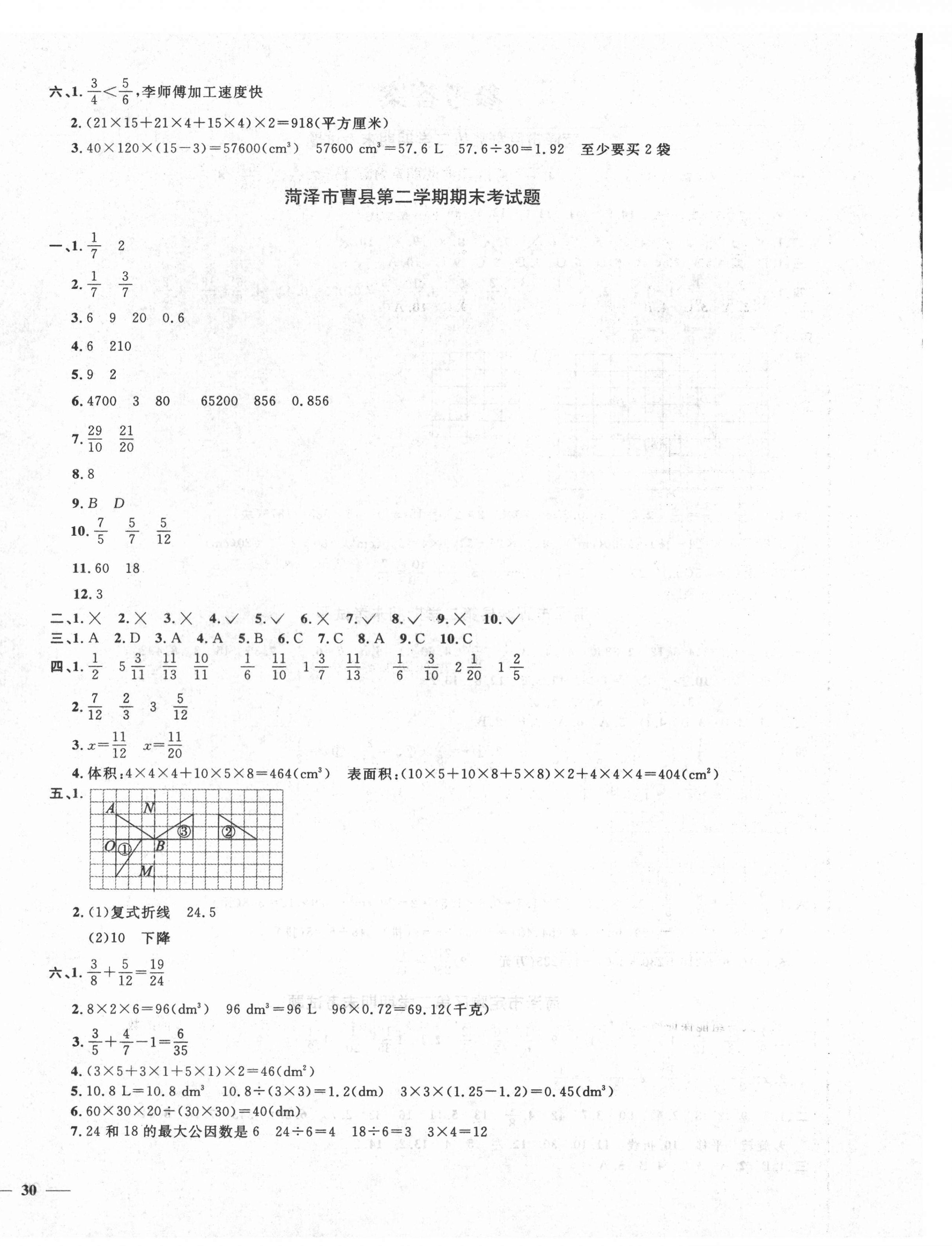 注:目前有些书本章节名称可能整理的还不是很完善,但都是按照顺序排列的,请同学们按照顺序仔细查找。练习册 2021年菏泽真题汇编真题试卷五年级数学下册人教版 答案主要是用来给同学们做完题方便对答案用的,请勿直接抄袭。