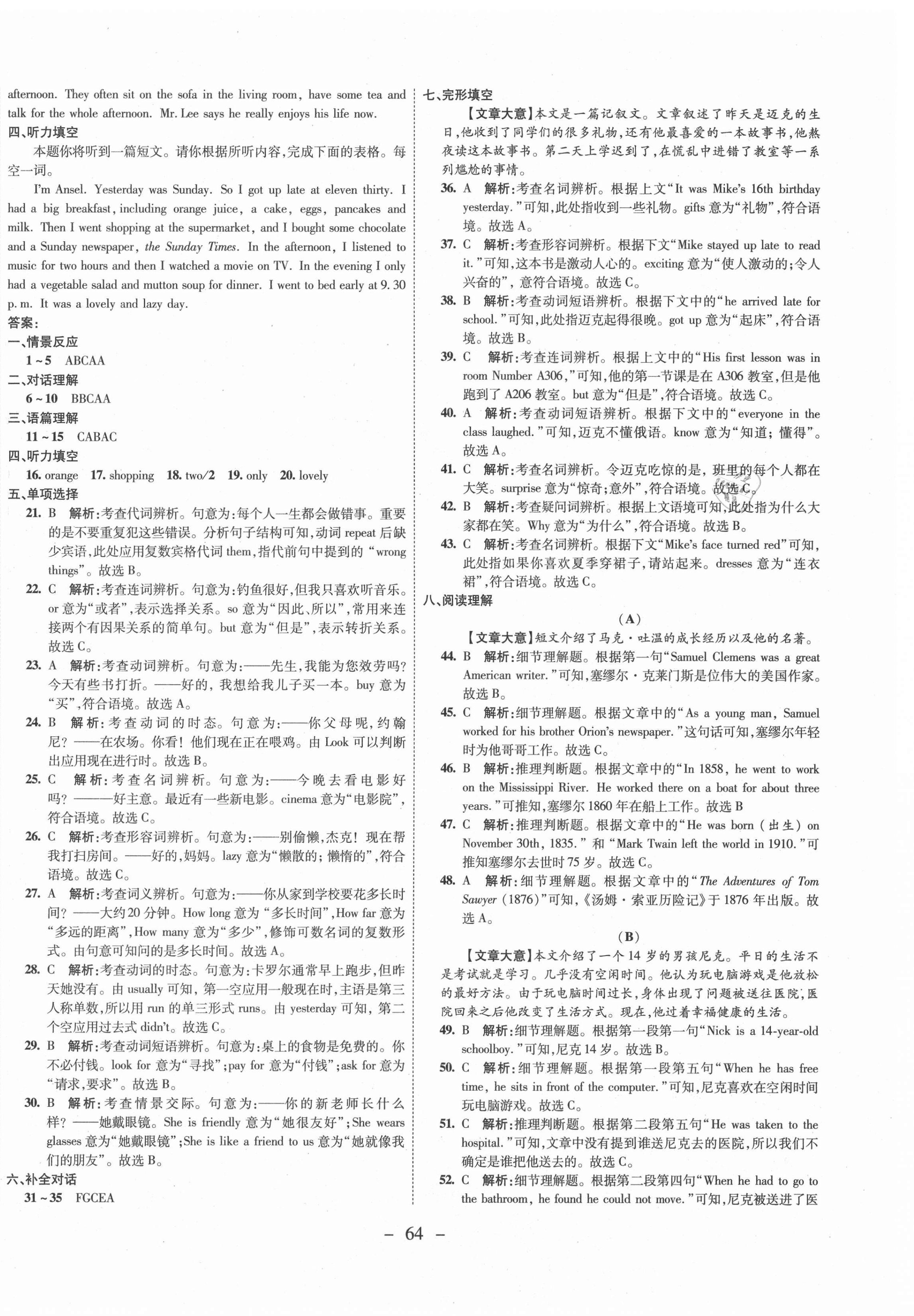 注:目前有些书本章节名称可能整理的还不是很完善,但都是按照顺序排列的,请同学们按照顺序仔细查找。练习册 2021年期末必刷题学练优计划七年级英语下册人教版山西专版 答案主要是用来给同学们做完题方便对答案用的,请勿直接抄袭。