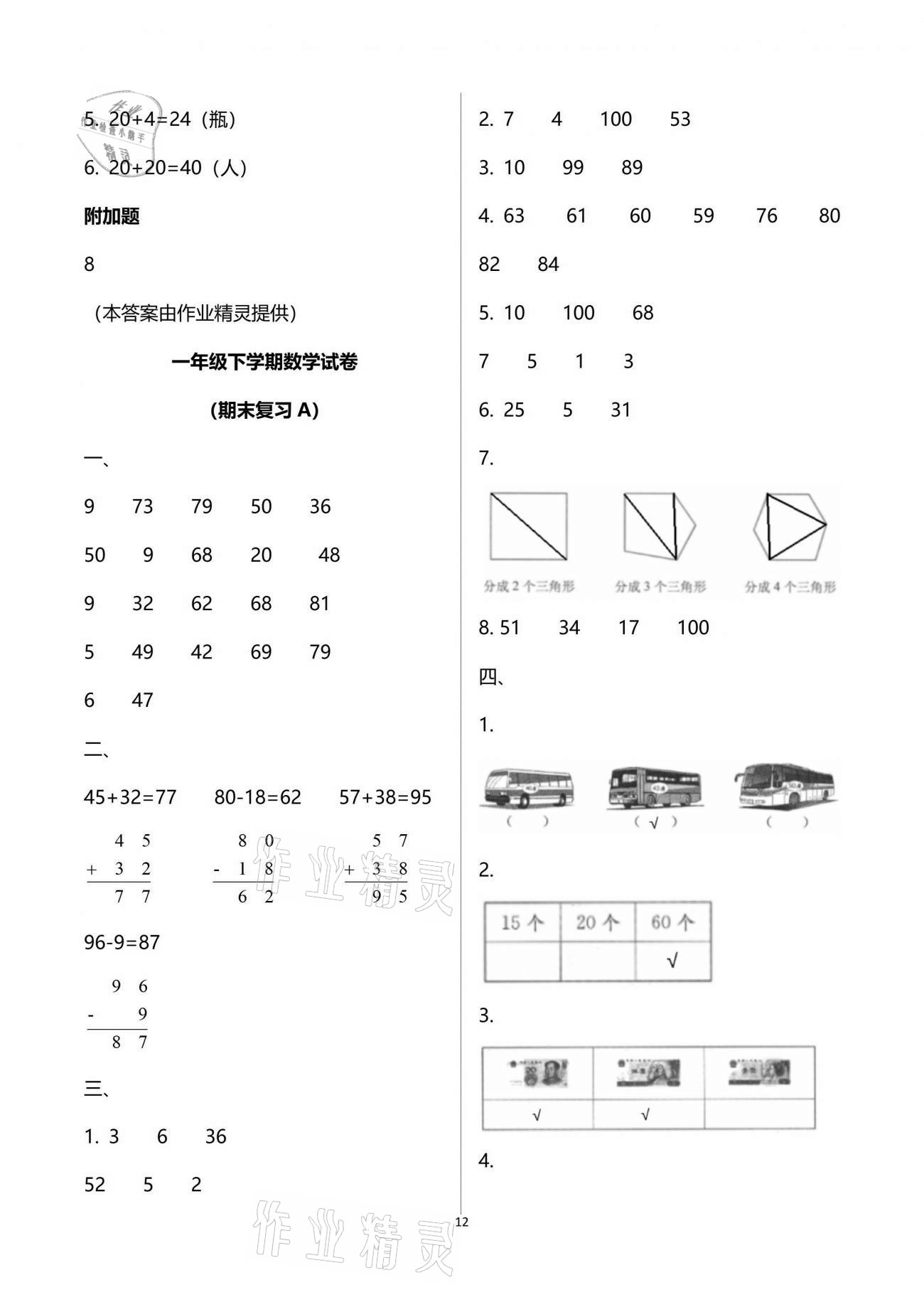 注:目前有些书本章节名称可能整理的还不是很完善,但都是按照顺序排列的,请同学们按照顺序仔细查找。练习册 2021年练习与测试小学数学一年级下册苏教版含活页试卷阅读 答案主要是用来给同学们做完题方便对答案用的,请勿直接抄袭。