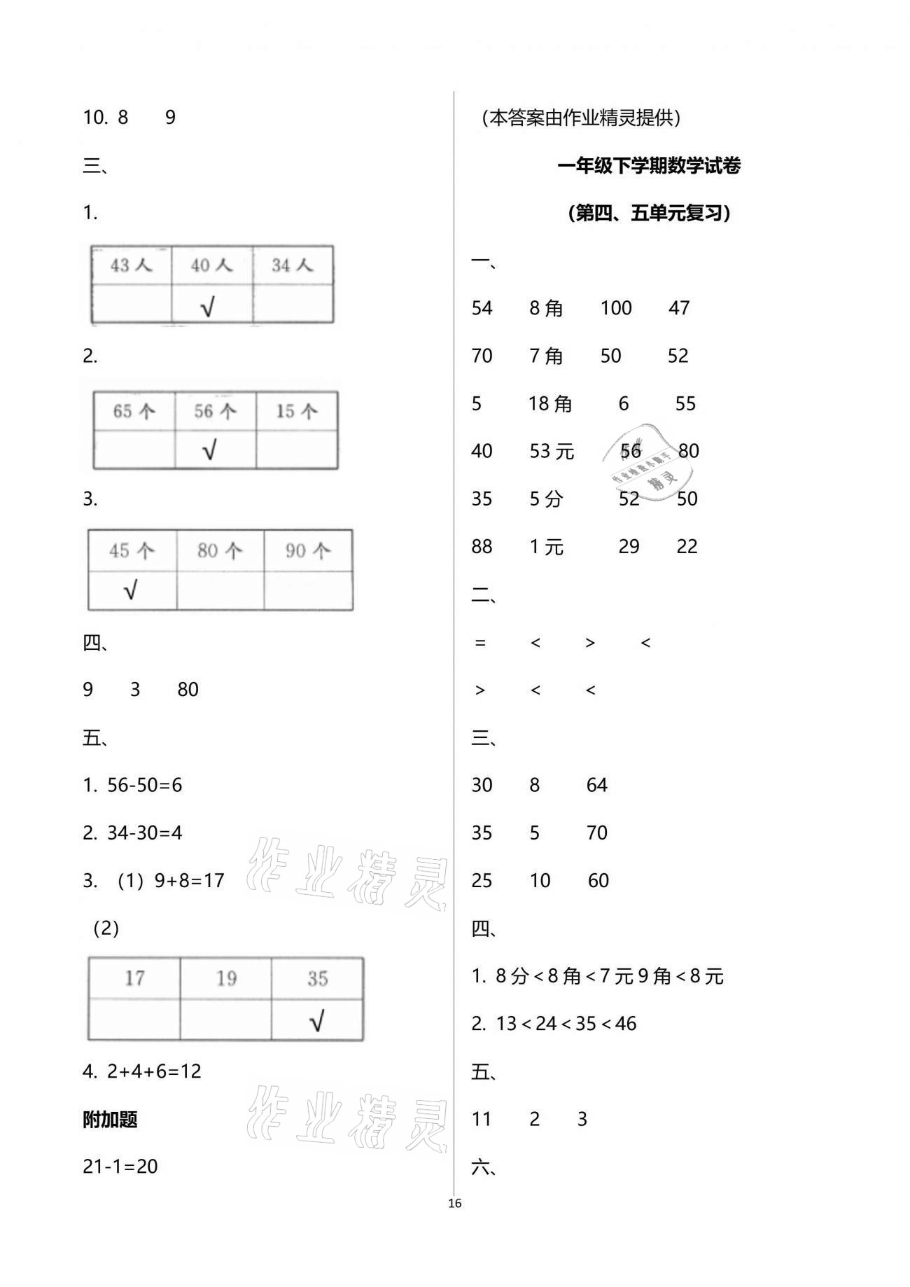 注:目前有些书本章节名称可能整理的还不是很完善,但都是按照顺序排列的,请同学们按照顺序仔细查找。练习册 2021年练习与测试小学数学一年级下册苏教版含活页试卷阅读 答案主要是用来给同学们做完题方便对答案用的,请勿直接抄袭。
