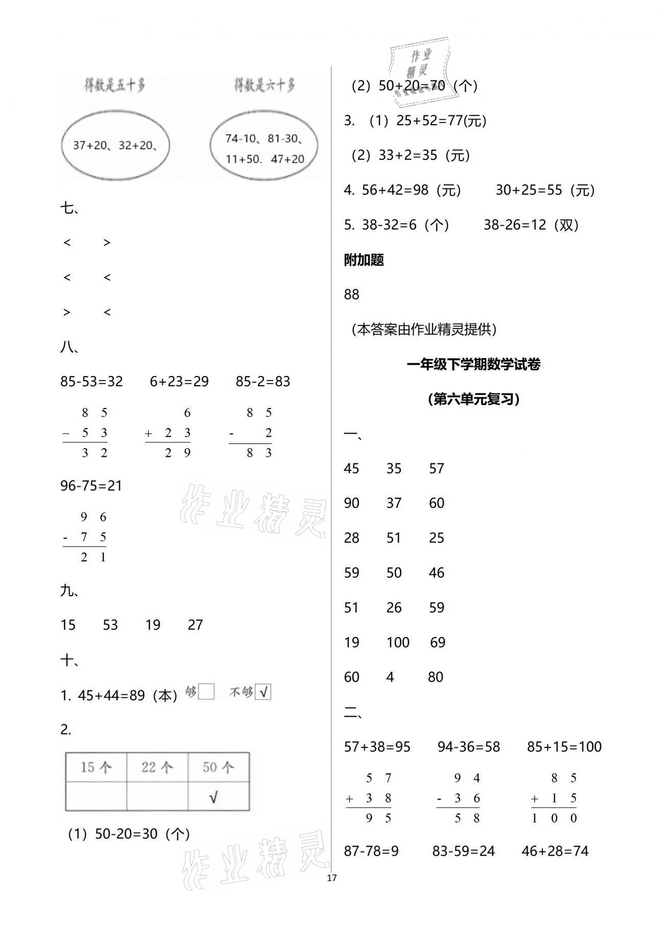 注:目前有些书本章节名称可能整理的还不是很完善,但都是按照顺序排列的,请同学们按照顺序仔细查找。练习册 2021年练习与测试小学数学一年级下册苏教版含活页试卷阅读 答案主要是用来给同学们做完题方便对答案用的,请勿直接抄袭。
