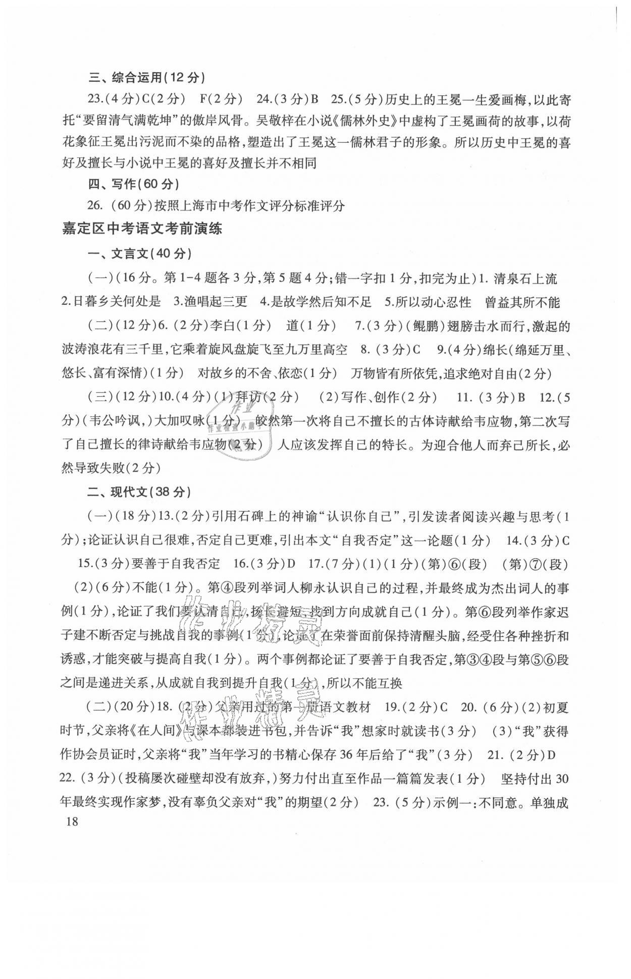 注:目前有些书本章节名称可能整理的还不是很完善,但都是按照顺序排列的,请同学们按照顺序仔细查找。练习册 2021年上海市中考语文考前演练 答案主要是用来给同学们做完题方便对答案用的,请勿直接抄袭。