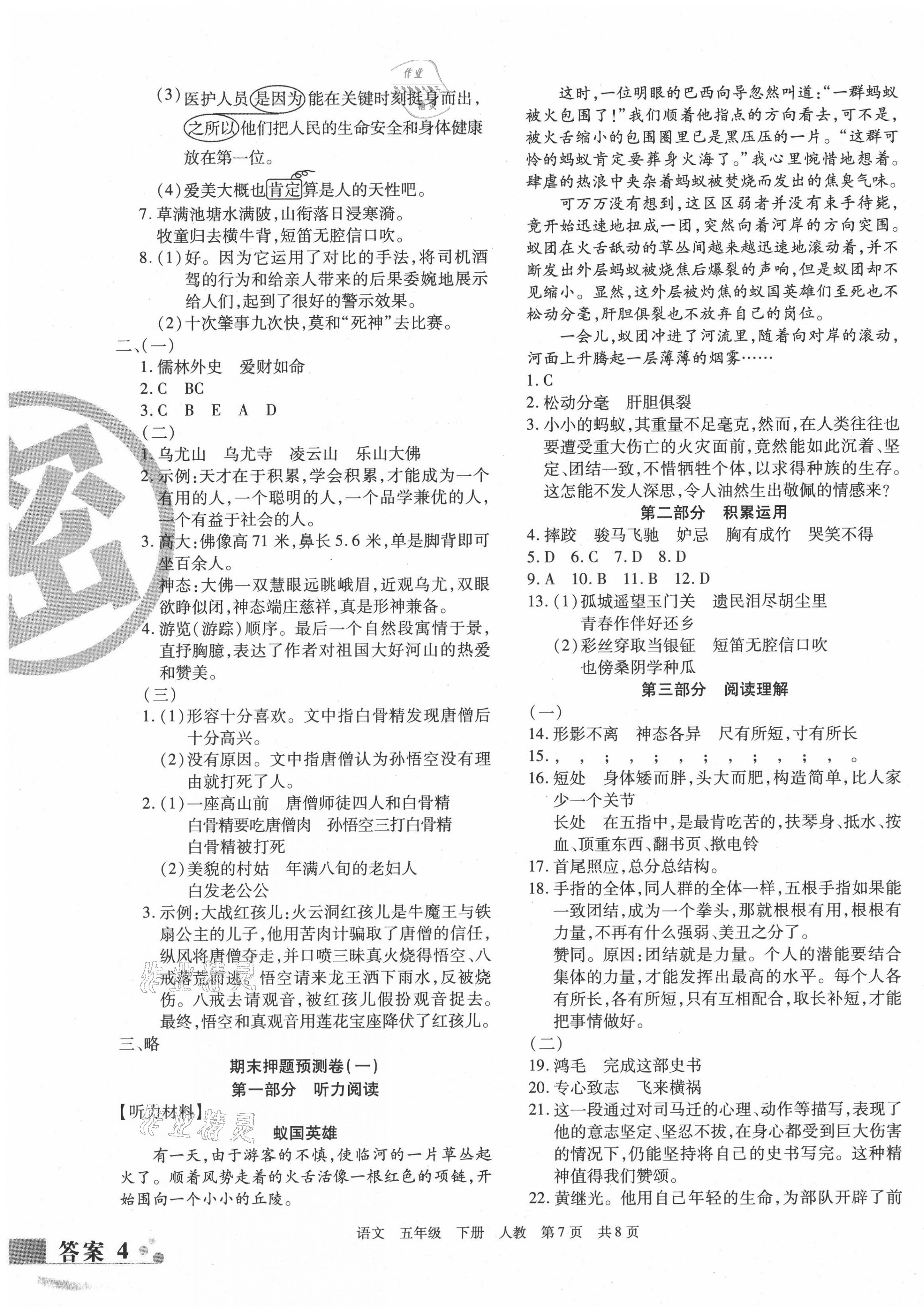 注:目前有些书本章节名称可能整理的还不是很完善,但都是按照顺序排列的,请同学们按照顺序仔细查找。练习册 2021年期末考试必刷卷五年级语文下册人教版 答案主要是用来给同学们做完题方便对答案用的,请勿直接抄袭。