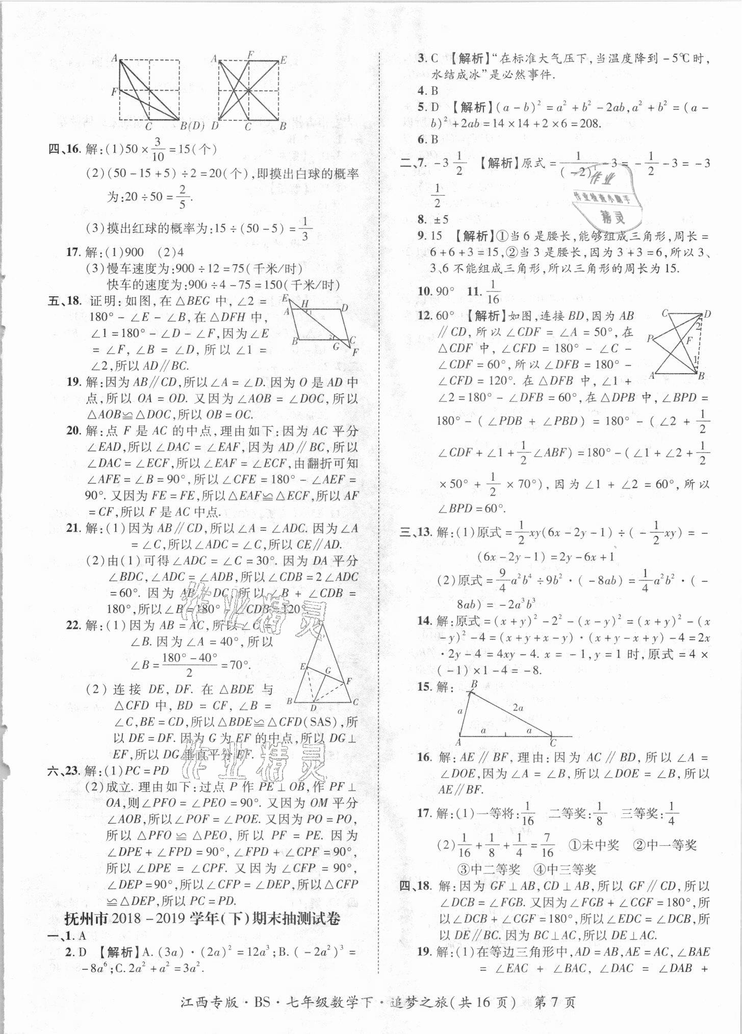 《2021年追梦之旅初中期末真题篇七年级数学下册北师大版江西专版》