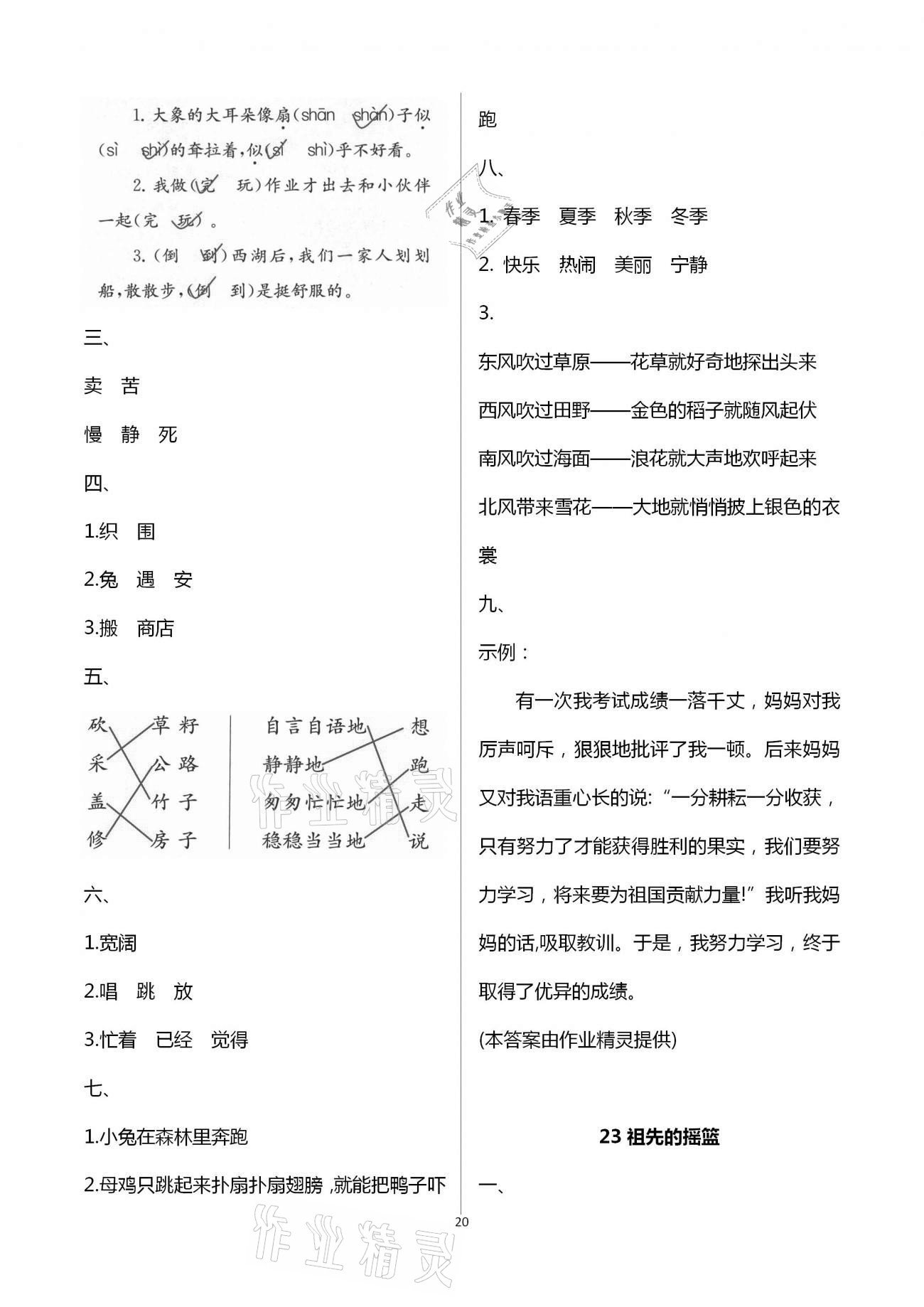 注:目前有些书本章节名称可能整理的还不是很完善,但都是按照顺序排列的,请同学们按照顺序仔细查找。练习册 2021年练习与测试含活页试卷阅读二年级语文下册人教版 答案主要是用来给同学们做完题方便对答案用的,请勿直接抄袭。
