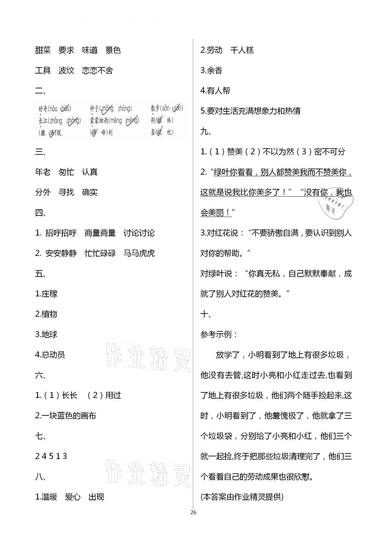 注:目前有些书本章节名称可能整理的还不是很完善,但都是按照顺序排列的,请同学们按照顺序仔细查找。练习册 2021年练习与测试含活页试卷阅读二年级语文下册人教版 答案主要是用来给同学们做完题方便对答案用的,请勿直接抄袭。