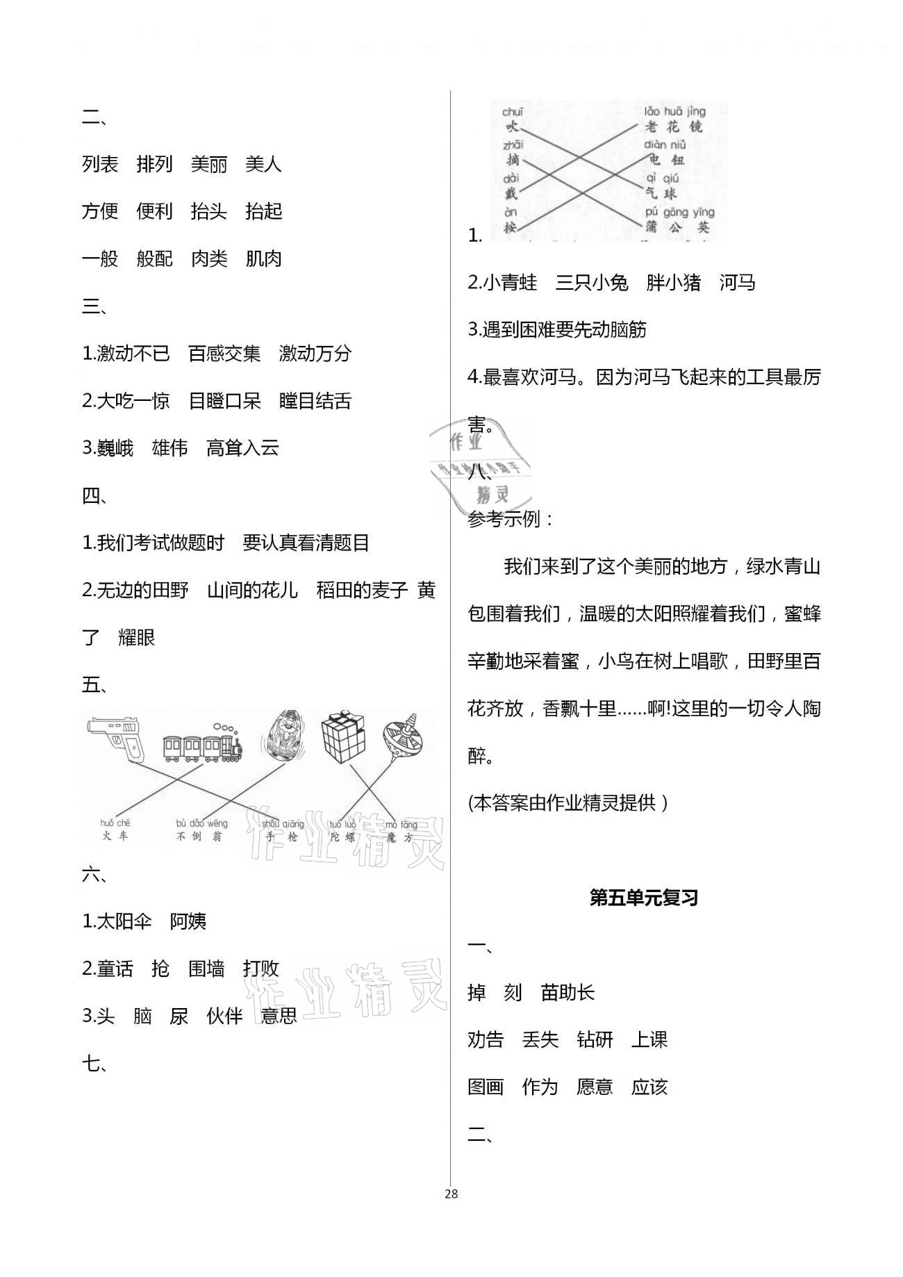 注:目前有些书本章节名称可能整理的还不是很完善,但都是按照顺序排列的,请同学们按照顺序仔细查找。练习册 2021年练习与测试含活页试卷阅读二年级语文下册人教版 答案主要是用来给同学们做完题方便对答案用的,请勿直接抄袭。