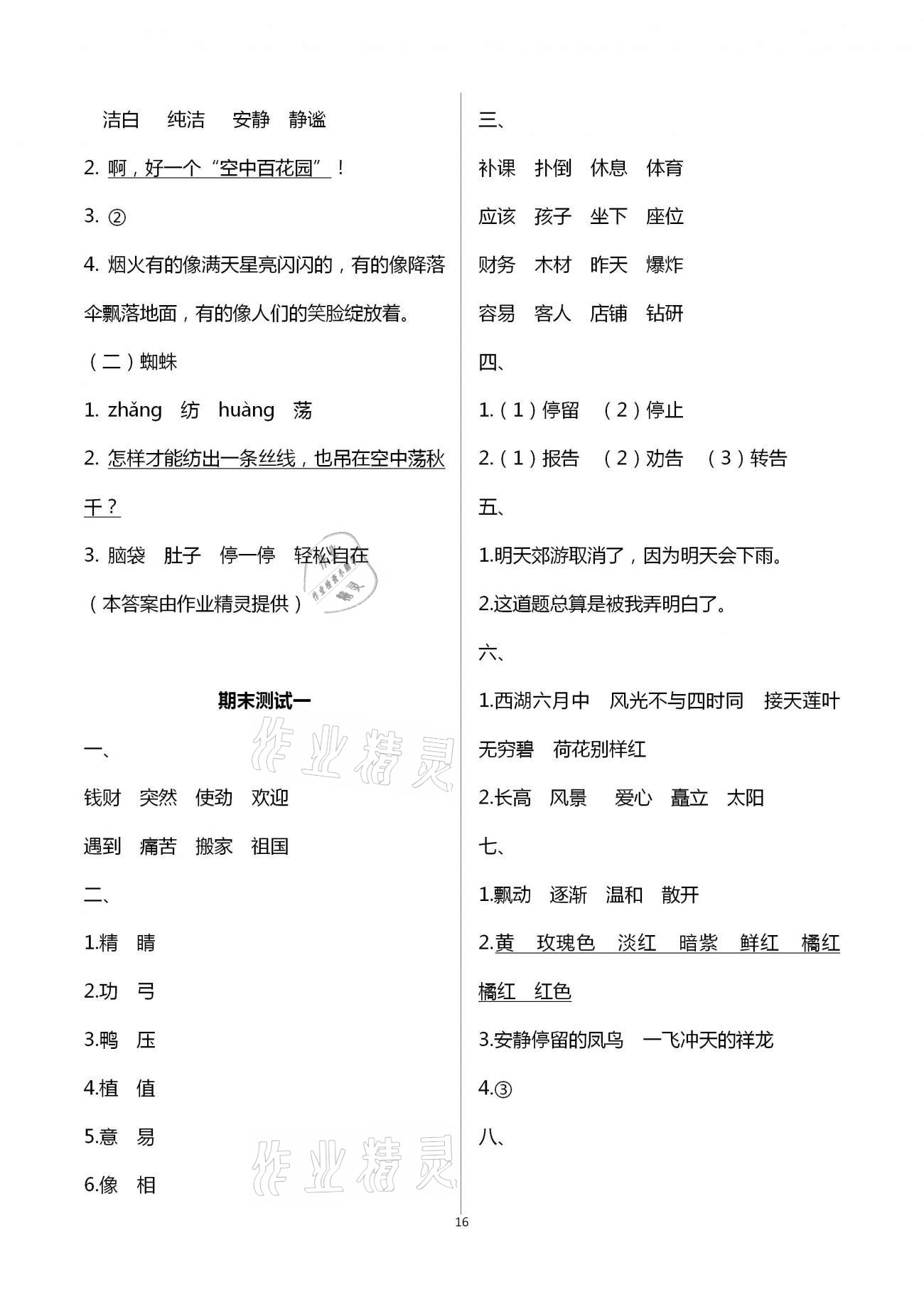 注:目前有些书本章节名称可能整理的还不是很完善,但都是按照顺序排列的,请同学们按照顺序仔细查找。练习册 2021年练习与测试含活页试卷阅读二年级语文下册人教版 答案主要是用来给同学们做完题方便对答案用的,请勿直接抄袭。