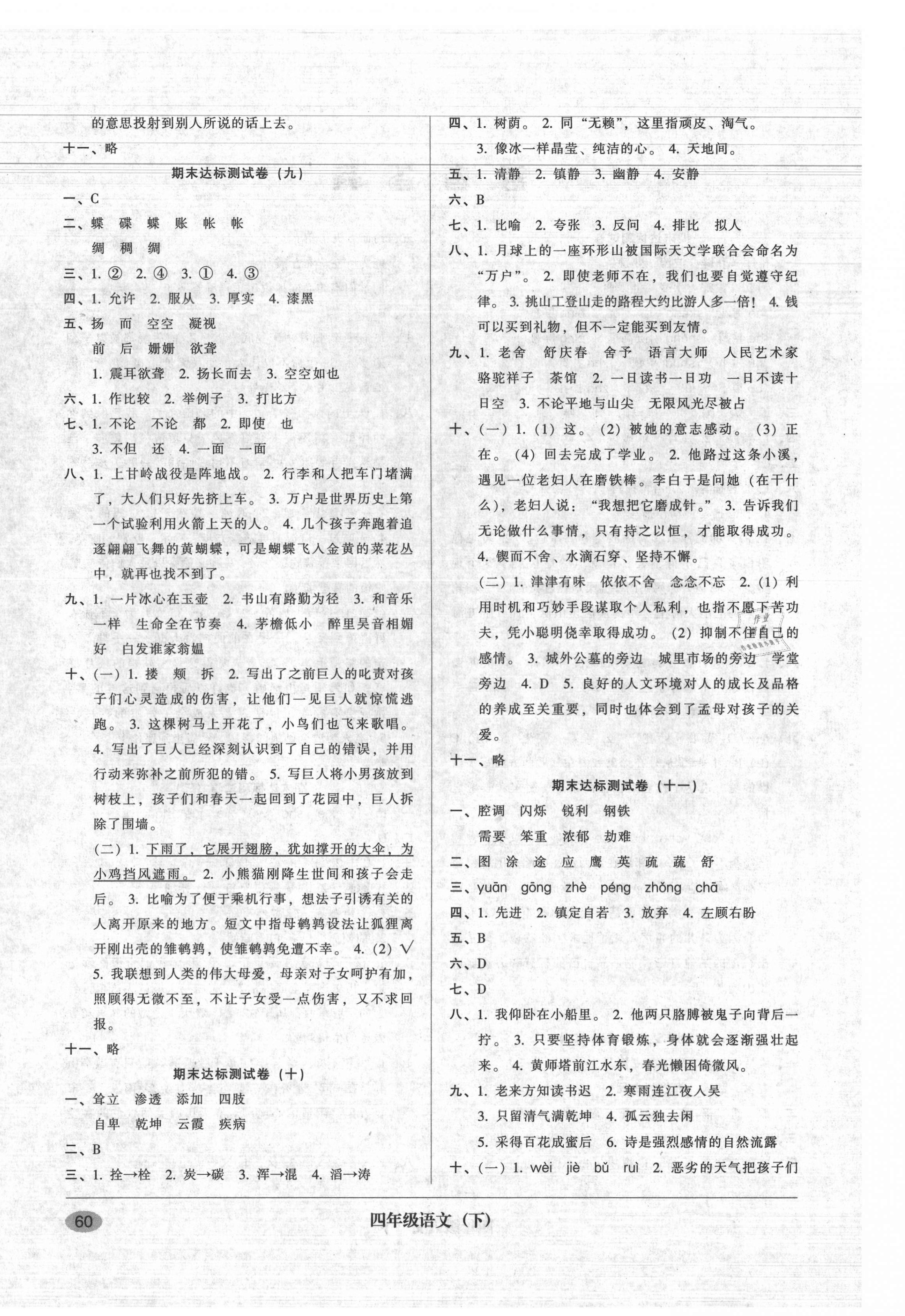 2021年第二课堂期末模拟试卷四年级语文下册人教版