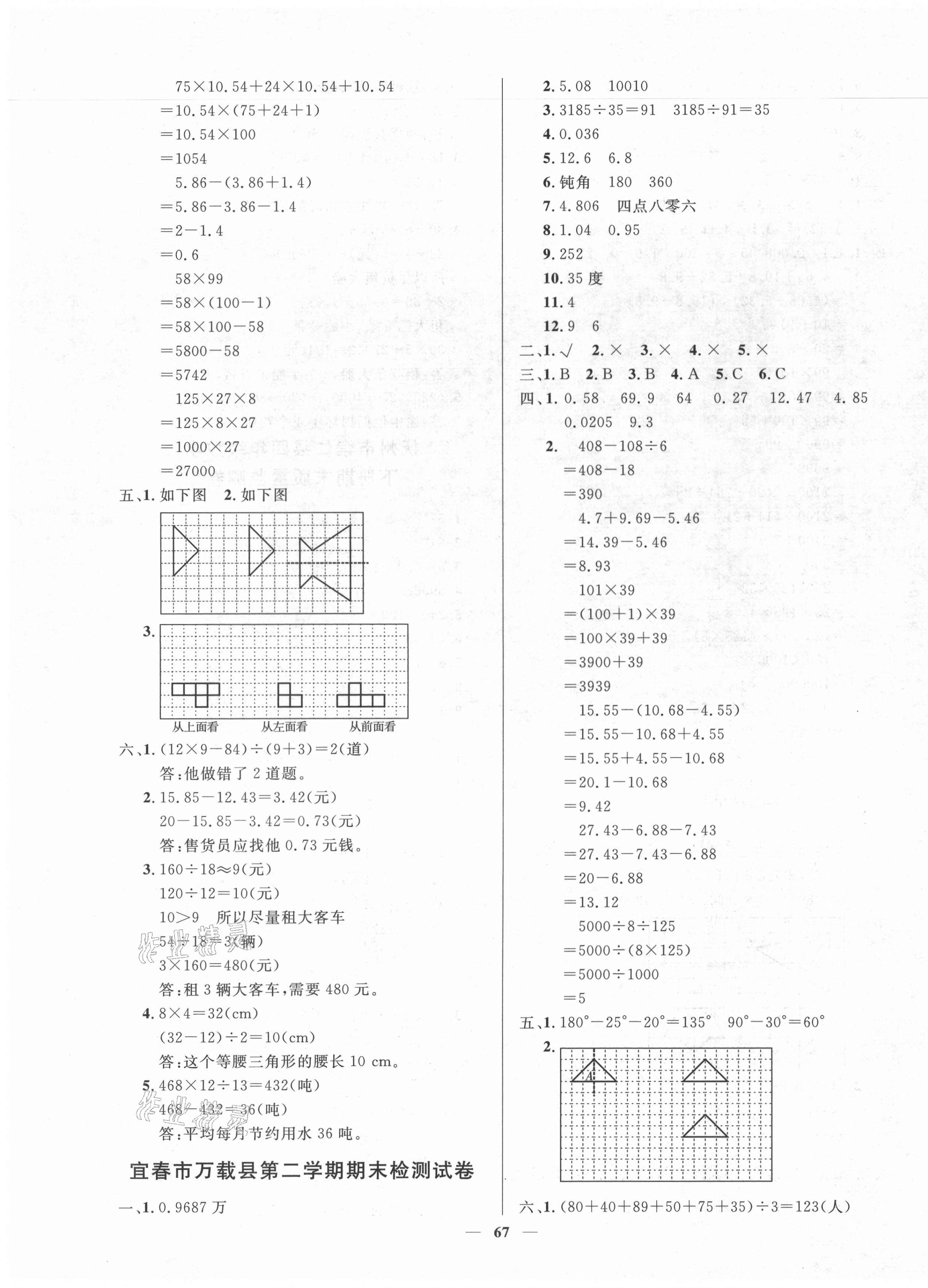 《2021年期末测试卷四年级数学下册人教版江西专版》