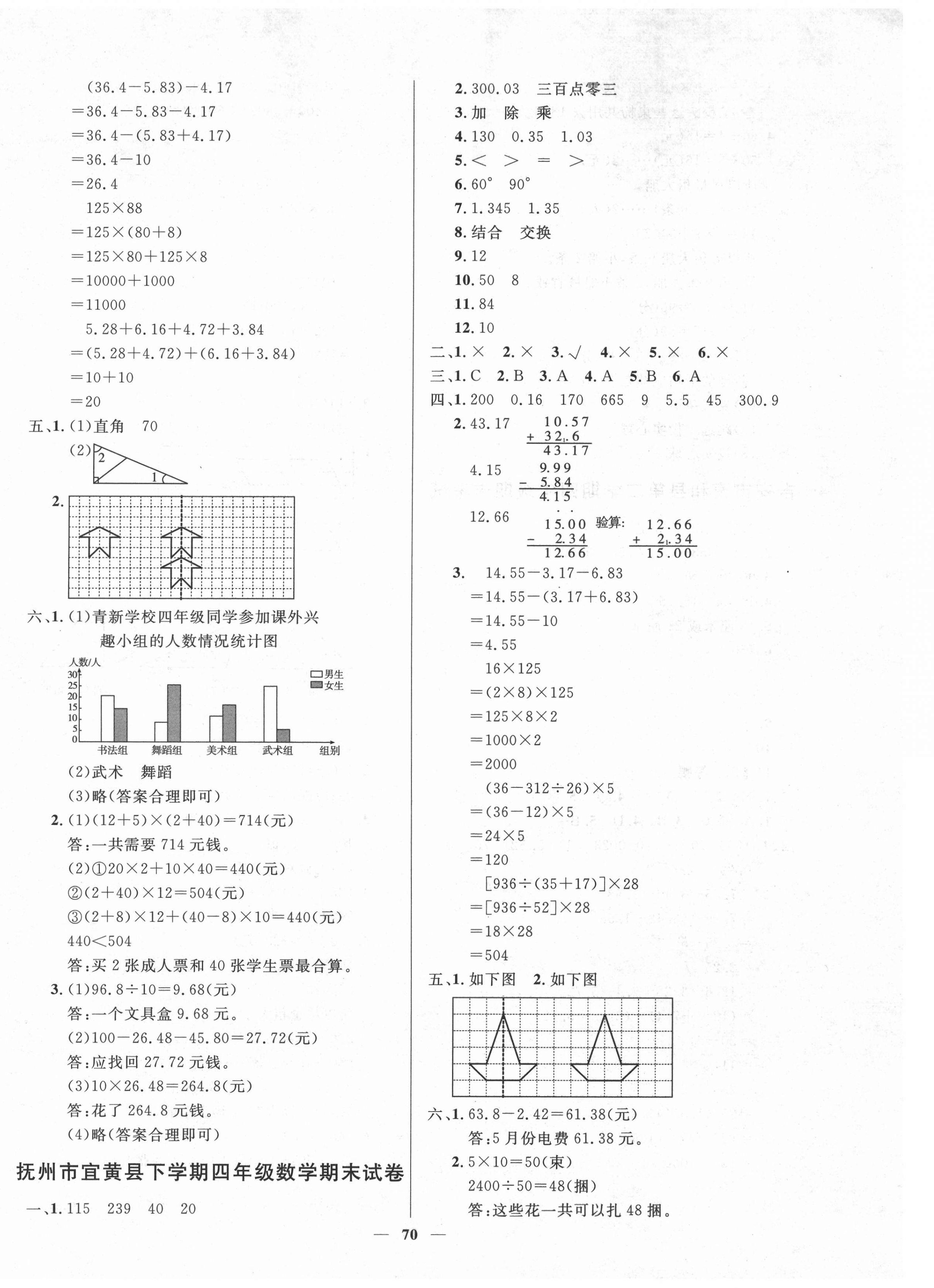 注:目前有些书本章节名称可能整理的还不是很完善,但都是按照顺序排列的,请同学们按照顺序仔细查找。练习册 2021年期末测试卷四年级数学下册人教版江西专版 答案主要是用来给同学们做完题方便对答案用的,请勿直接抄袭。