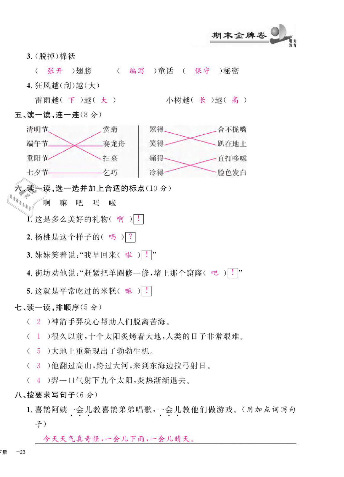 2021年期末金牌卷二年级语文下册人教版宁波专版