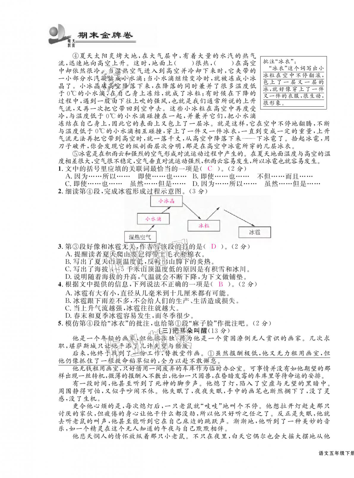 《2021年期末金牌卷五年级语文下册人教版宁波专版》