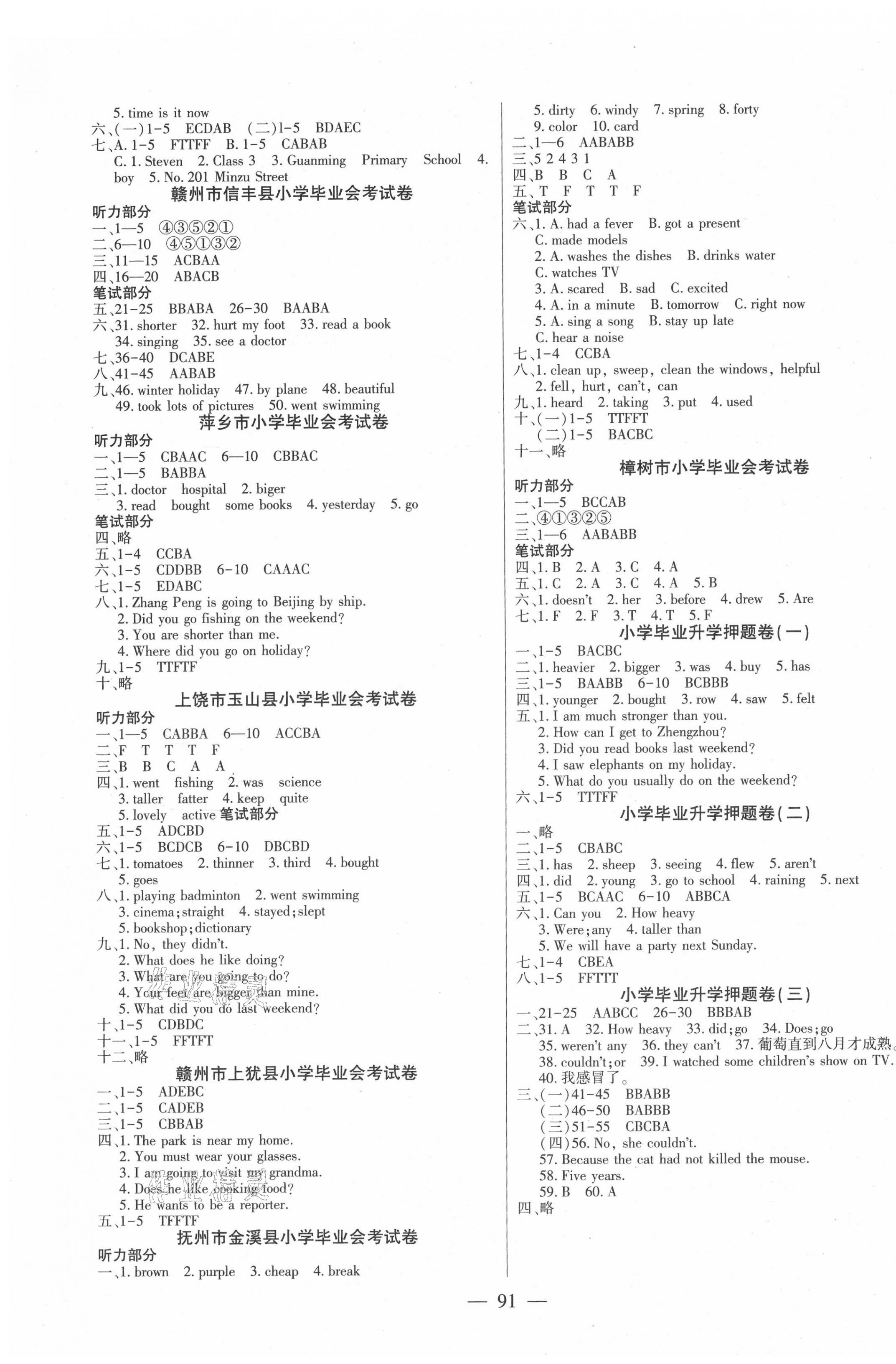 注:目前有些书本章节名称可能整理的还不是很完善,但都是按照顺序排列的,请同学们按照顺序仔细查找。练习册 2021年小学毕业全真模拟试卷英语江西专版 答案主要是用来给同学们做完题方便对答案用的,请勿直接抄袭。