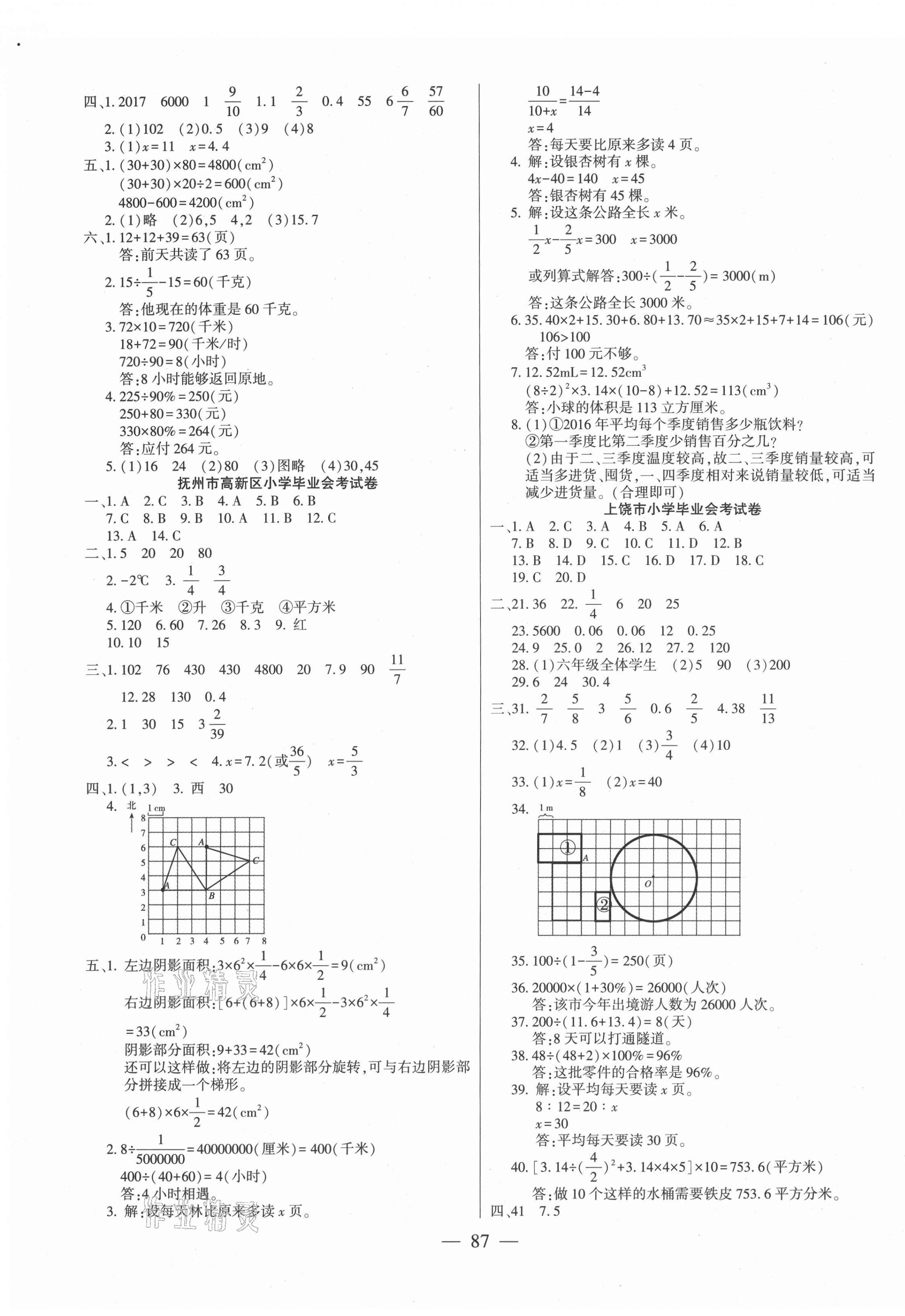 注:目前有些书本章节名称可能整理的还不是很完善,但都是按照顺序排列的,请同学们按照顺序仔细查找。练习册 2021年小学毕业全真模拟试卷六年级数学通用版江西专版 答案主要是用来给同学们做完题方便对答案用的,请勿直接抄袭。