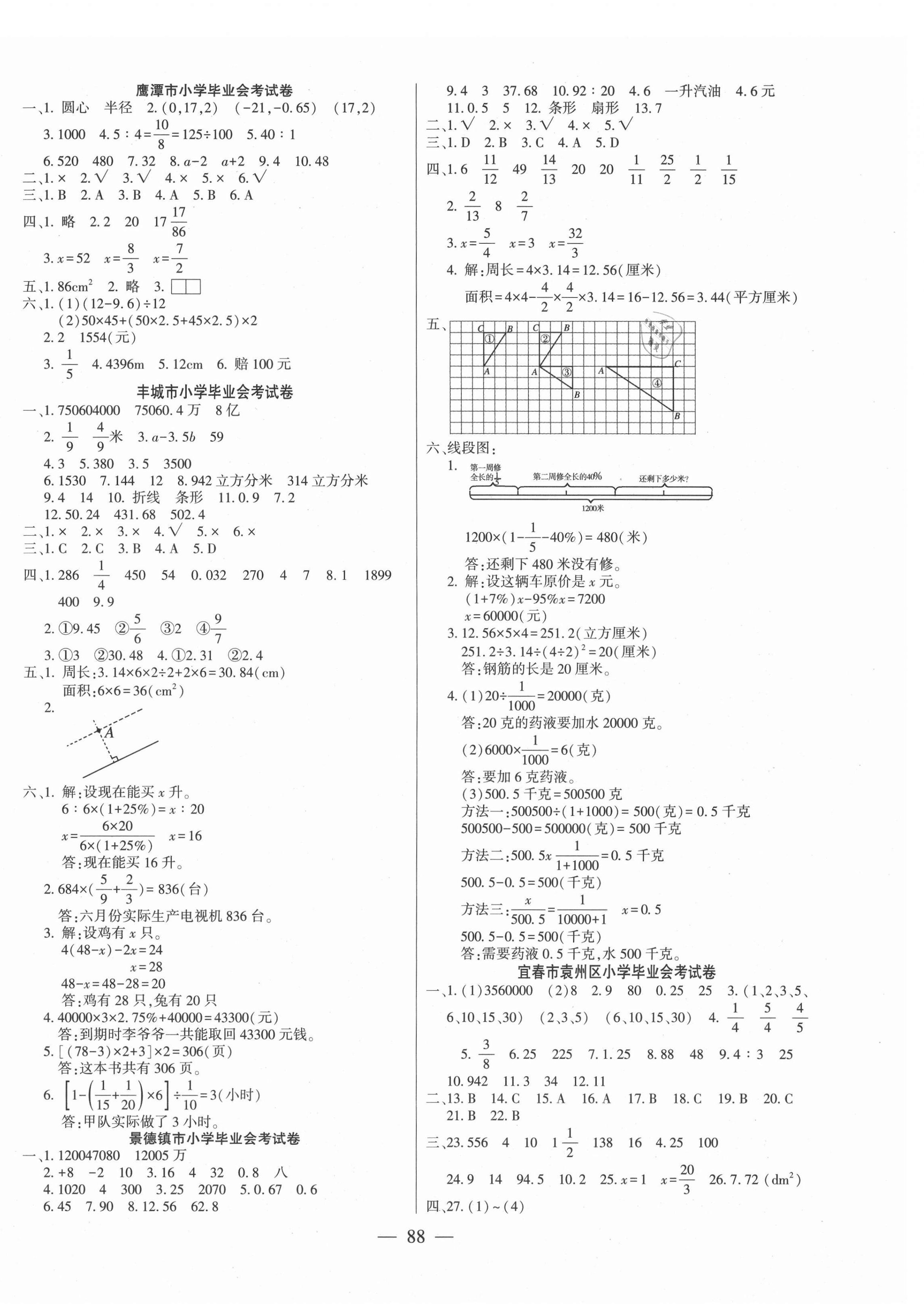注:目前有些书本章节名称可能整理的还不是很完善,但都是按照顺序排列的,请同学们按照顺序仔细查找。练习册 2021年小学毕业全真模拟试卷六年级数学通用版江西专版 答案主要是用来给同学们做完题方便对答案用的,请勿直接抄袭。