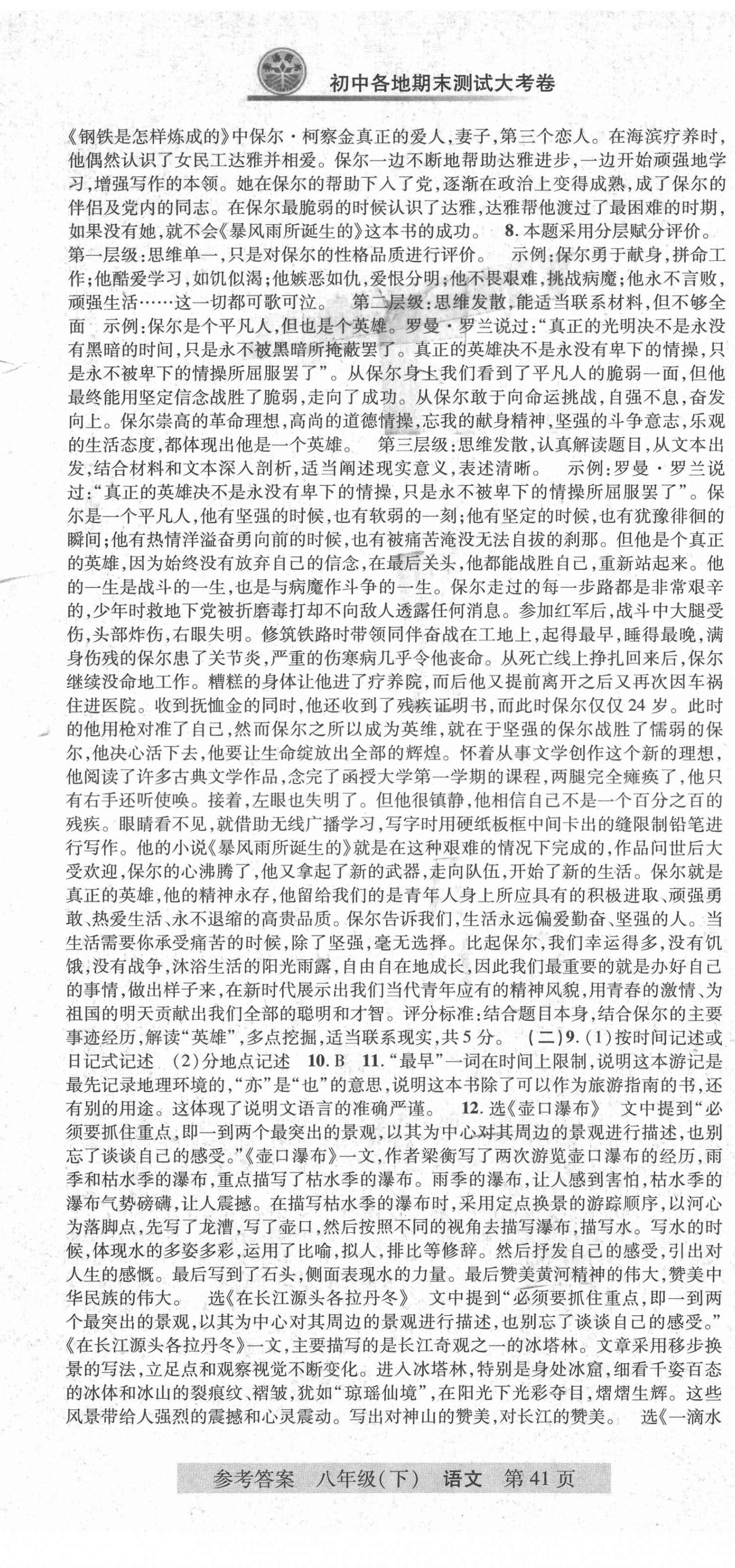 注:目前有些书本章节名称可能整理的还不是很完善,但都是按照顺序排列的,请同学们按照顺序仔细查找。练习册 2021年各地期末测试大考卷八年级语文下册人教版浙江专版 答案主要是用来给同学们做完题方便对答案用的,请勿直接抄袭。