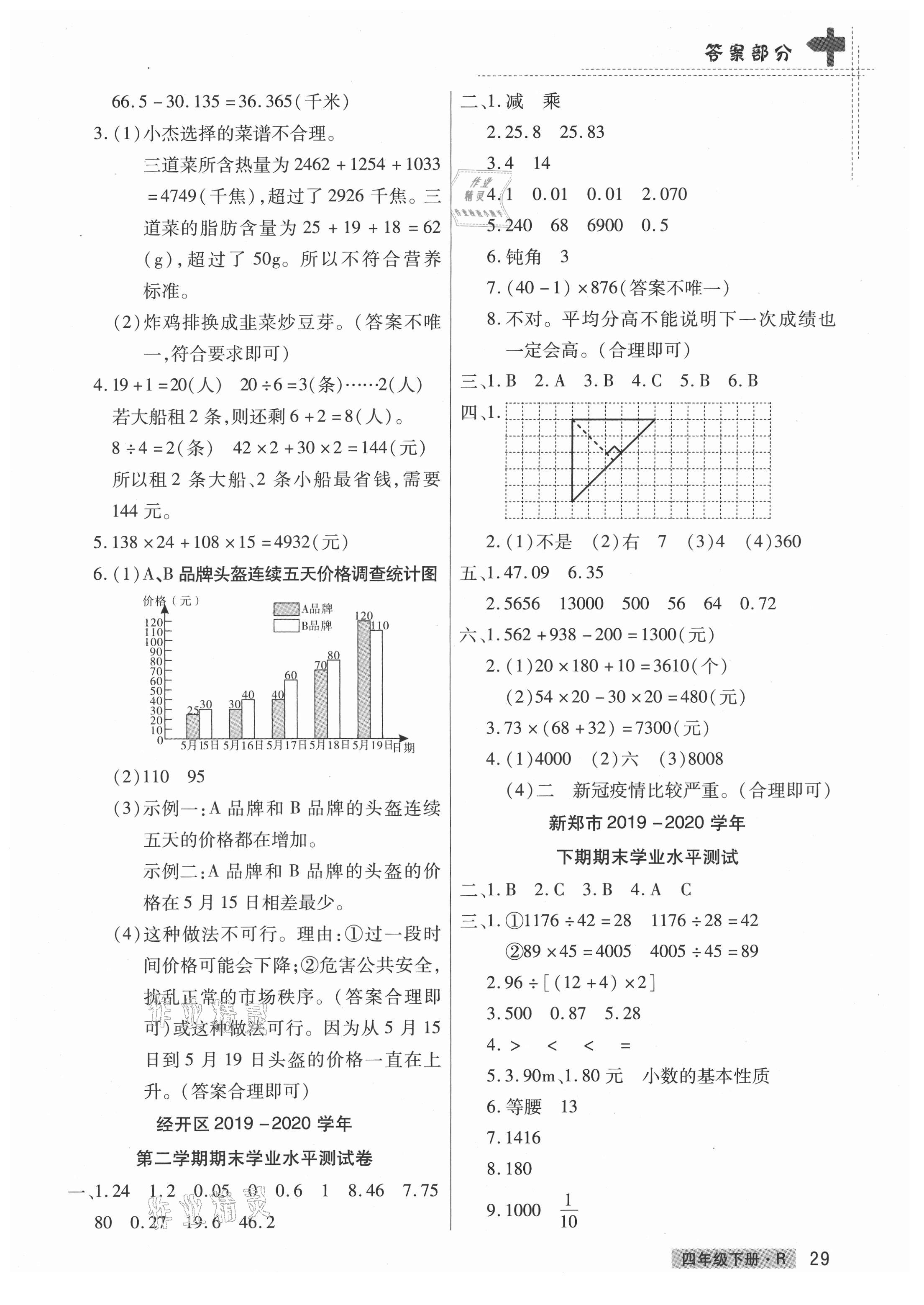 注:目前有些书本章节名称可能整理的还不是很完善,但都是按照顺序排列的,请同学们按照顺序仔细查找。练习册 2021年期末考试必刷卷四年级数学下册人教版郑州专版 答案主要是用来给同学们做完题方便对答案用的,请勿直接抄袭。