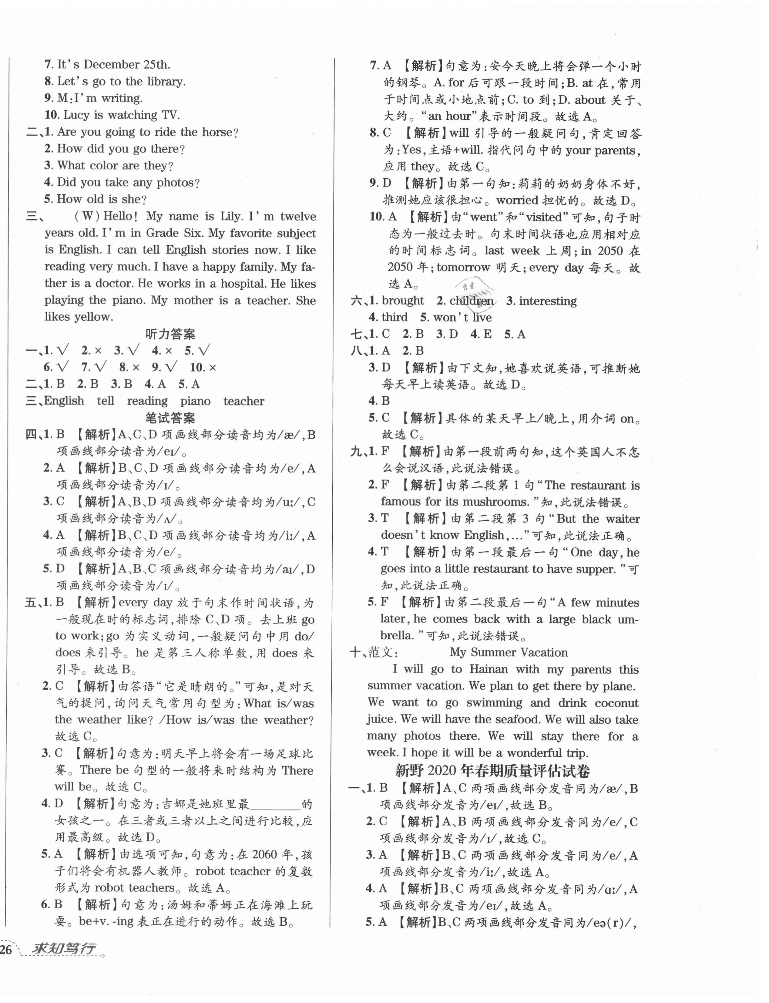 注:目前有些书本章节名称可能整理的还不是很完善,但都是按照顺序排列的,请同学们按照顺序仔细查找。练习册 2021年河南3年玉汝于成期末真卷汇编六年级英语下册北师大版南阳专版 答案主要是用来给同学们做完题方便对答案用的,请勿直接抄袭。