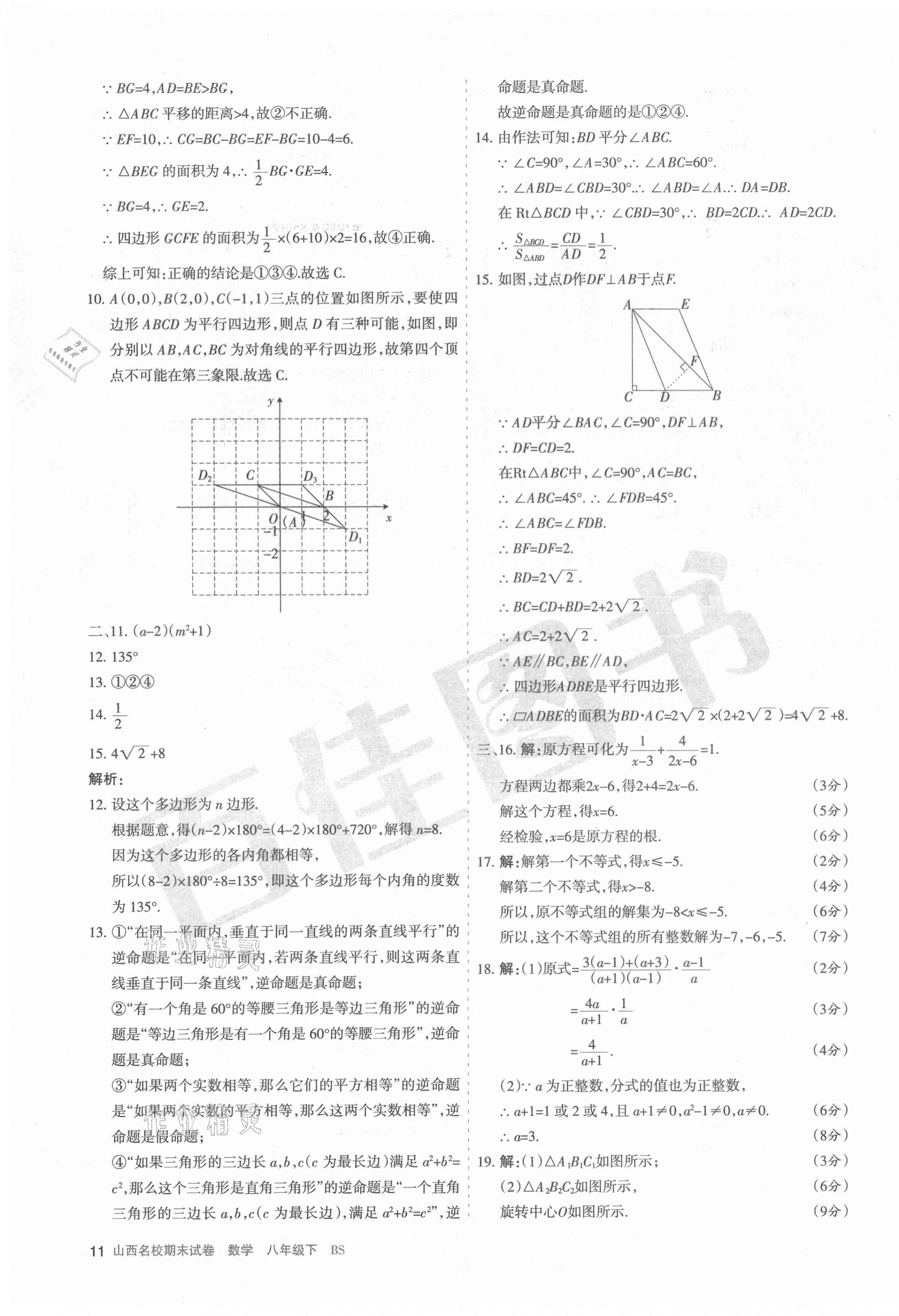 注:目前有些书本章节名称可能整理的还不是很完善,但都是按照顺序排列的,请同学们按照顺序仔细查找。练习册 2021年山西名校期末试卷八年级数学下册北师大版 答案主要是用来给同学们做完题方便对答案用的,请勿直接抄袭。