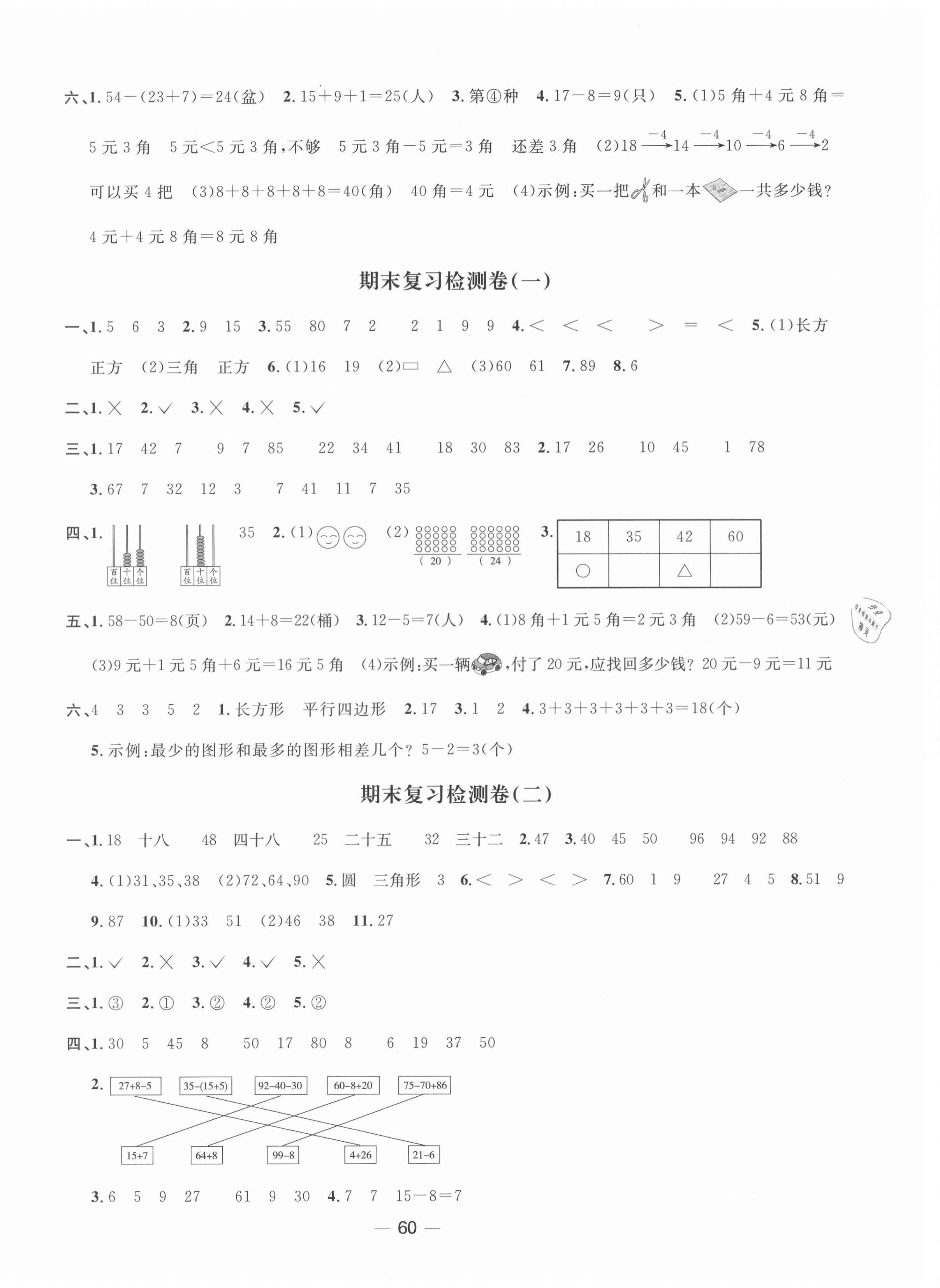 2021年阳光同学期末复习15天冲刺100分一年级数学下册人教版