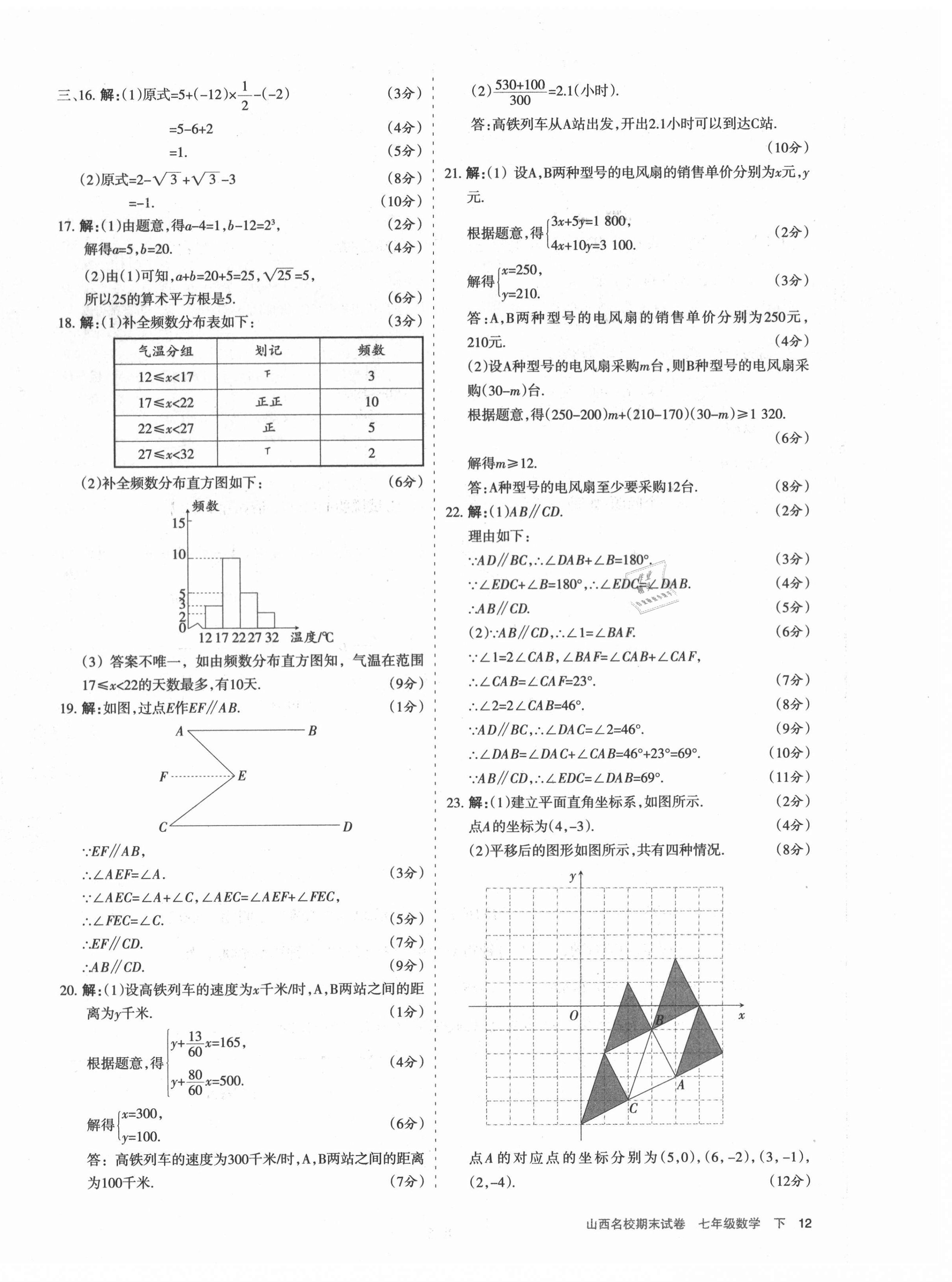 注:目前有些书本章节名称可能整理的还不是很完善,但都是按照顺序排列的,请同学们按照顺序仔细查找。练习册 2021年山西名校期末试卷七年级数学下册人教版 答案主要是用来给同学们做完题方便对答案用的,请勿直接抄袭。