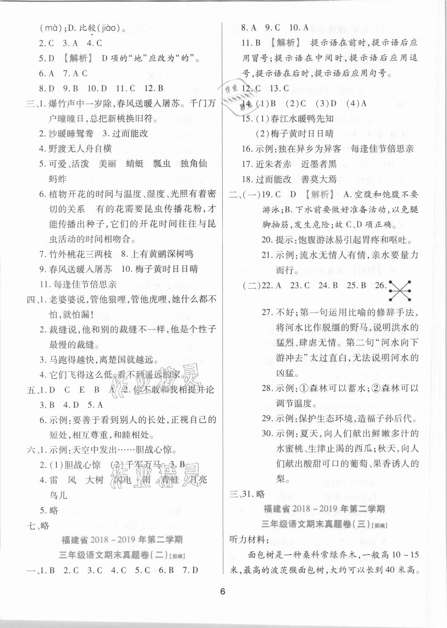 注:目前有些书本章节名称可能整理的还不是很完善,但都是按照顺序排列的,请同学们按照顺序仔细查找。练习册 2021年期末大盘点三年级语文下册人教版福建专版 答案主要是用来给同学们做完题方便对答案用的,请勿直接抄袭。