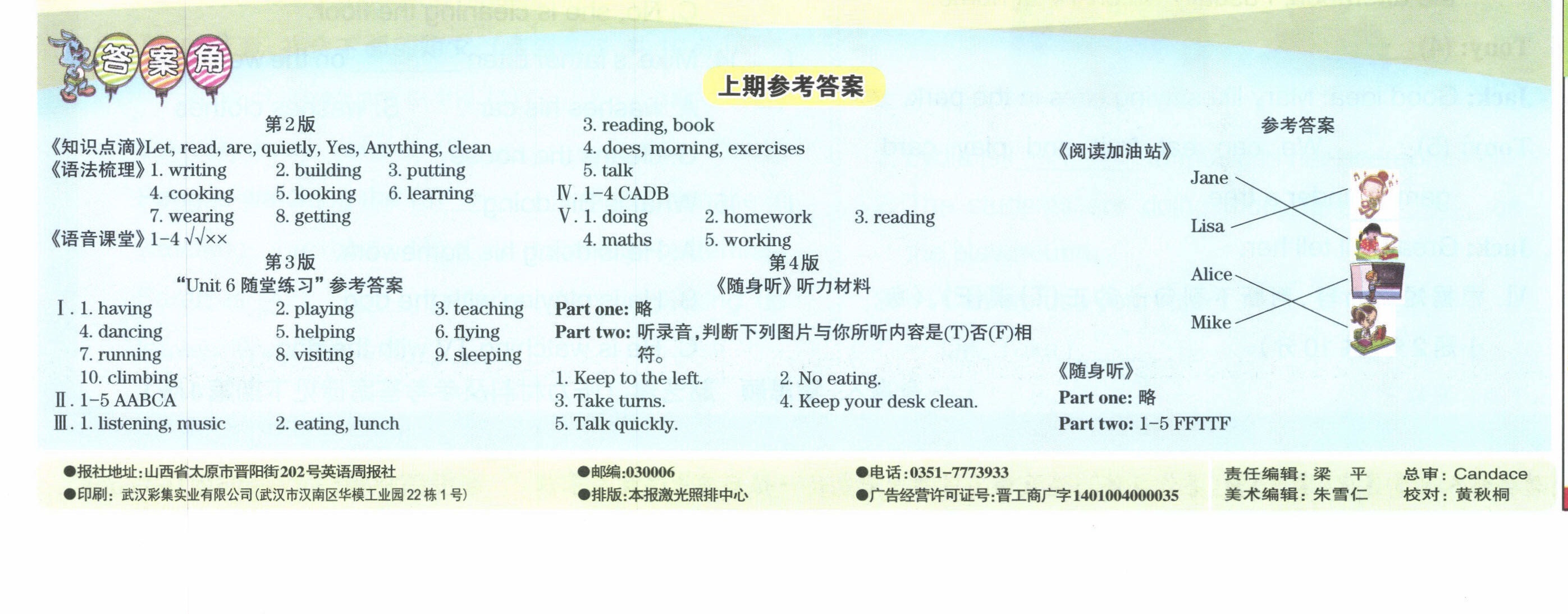 注:目前有些书本章节名称可能整理的还不是很完善,但都是按照顺序排列的,请同学们按照顺序仔细查找。练习册 2021年英语周报五年级人教PEP版 答案主要是用来给同学们做完题方便对答案用的,请勿直接抄袭。