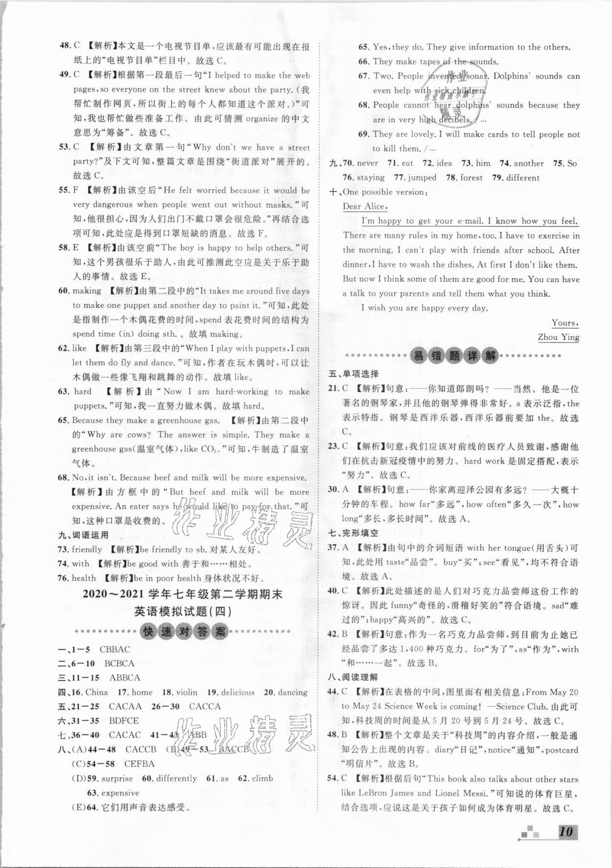 注:目前有些书本章节名称可能整理的还不是很完善,但都是按照顺序排列的,请同学们按照顺序仔细查找。练习册 2021年本土期末卷七年级英语下册人教版山西专版 答案主要是用来给同学们做完题方便对答案用的,请勿直接抄袭。