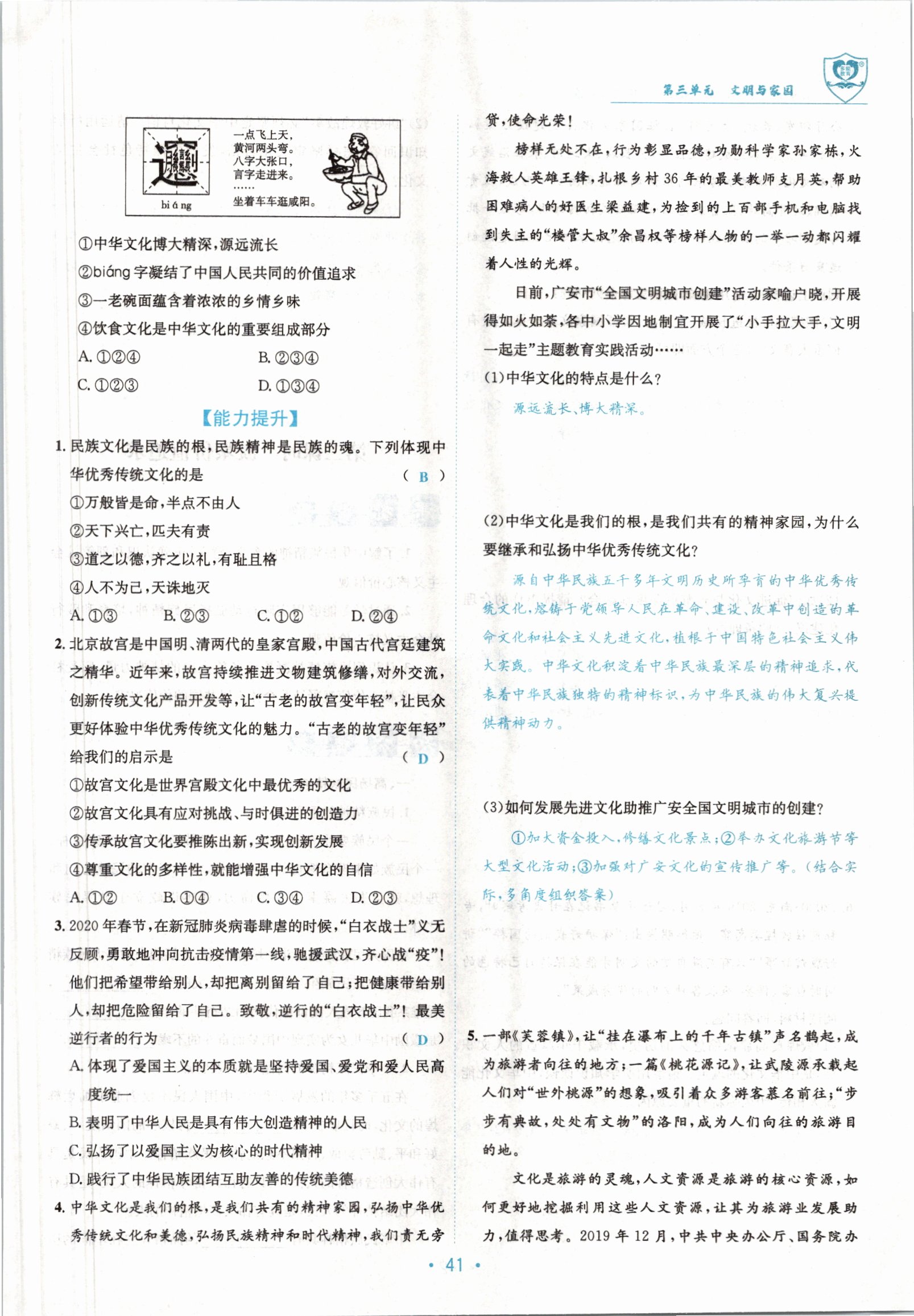 注:目前有些书本章节名称可能整理的还不是很完善,但都是按照顺序排列的,请同学们按照顺序仔细查找。练习册 2022版指南针导学探究九年级道德与法治全一册人教版 答案主要是用来给同学们做完题方便对答案用的,请勿直接抄袭。