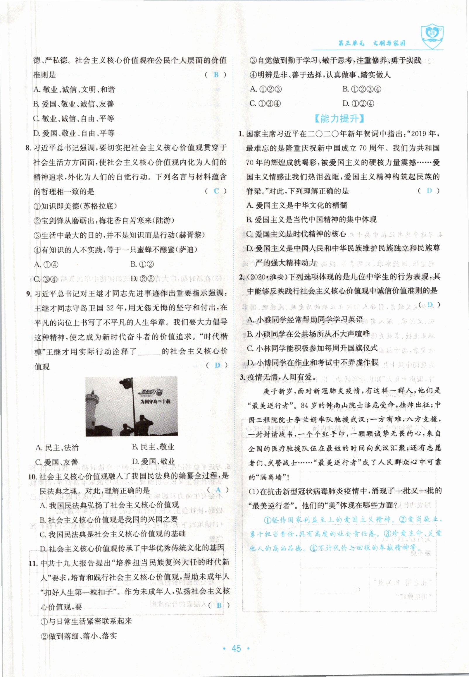 注:目前有些书本章节名称可能整理的还不是很完善,但都是按照顺序排列的,请同学们按照顺序仔细查找。练习册 2022版指南针导学探究九年级道德与法治全一册人教版 答案主要是用来给同学们做完题方便对答案用的,请勿直接抄袭。