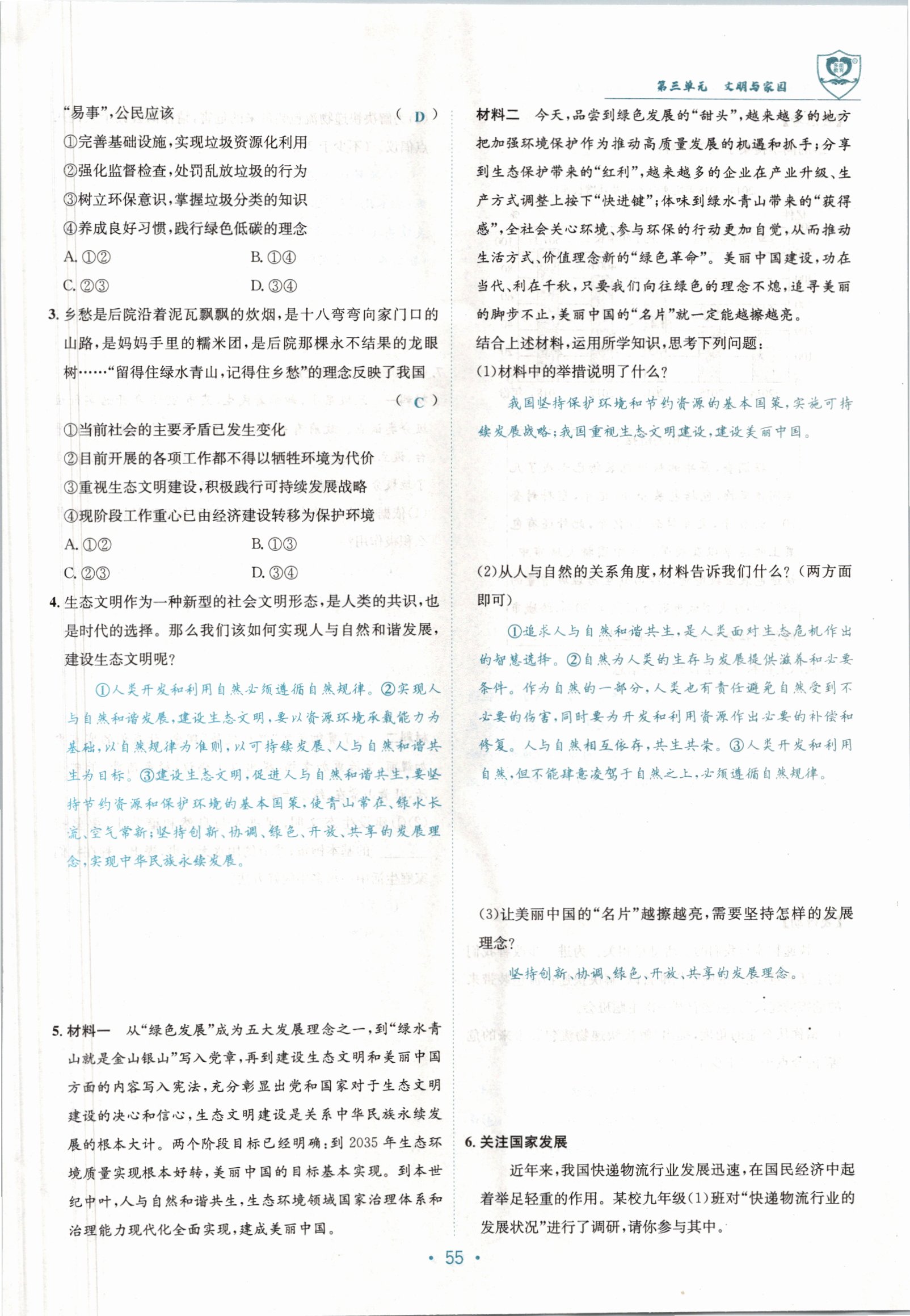 注:目前有些书本章节名称可能整理的还不是很完善,但都是按照顺序排列的,请同学们按照顺序仔细查找。练习册 2022版指南针导学探究九年级道德与法治全一册人教版 答案主要是用来给同学们做完题方便对答案用的,请勿直接抄袭。