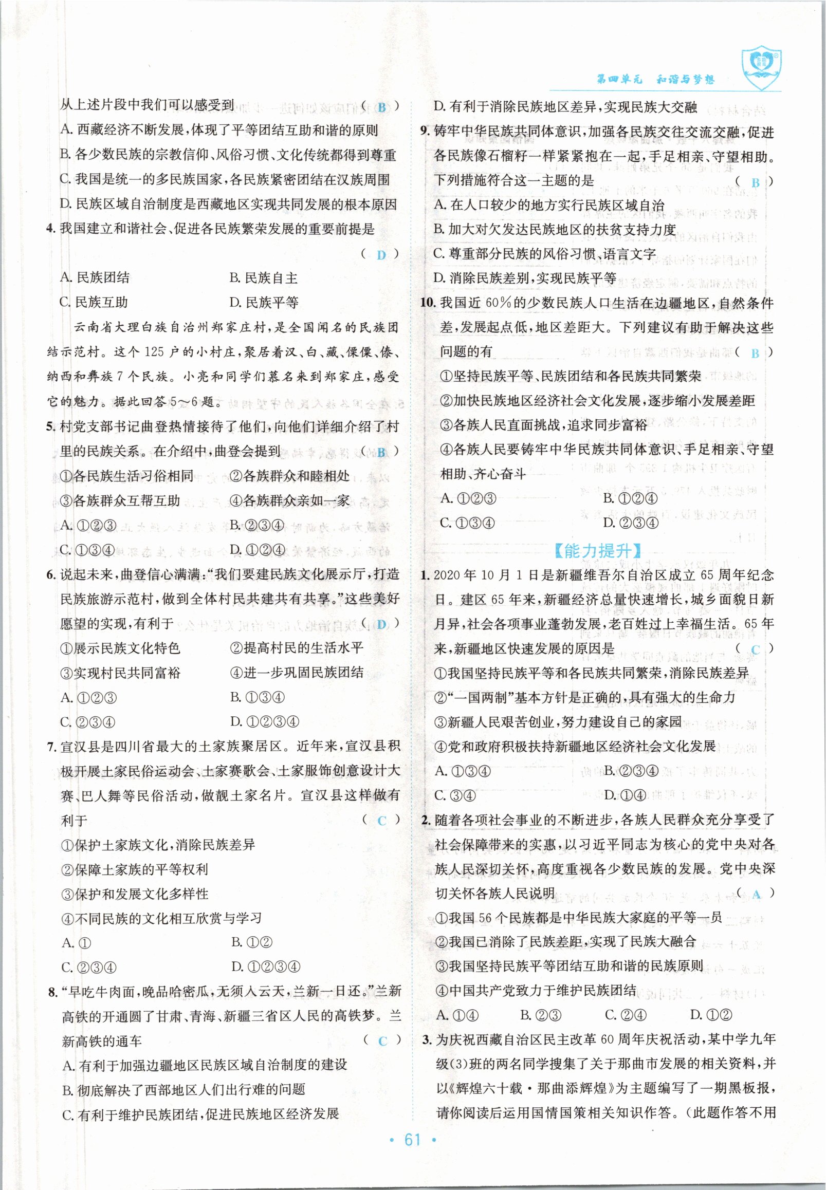 注:目前有些书本章节名称可能整理的还不是很完善,但都是按照顺序排列的,请同学们按照顺序仔细查找。练习册 2022版指南针导学探究九年级道德与法治全一册人教版 答案主要是用来给同学们做完题方便对答案用的,请勿直接抄袭。