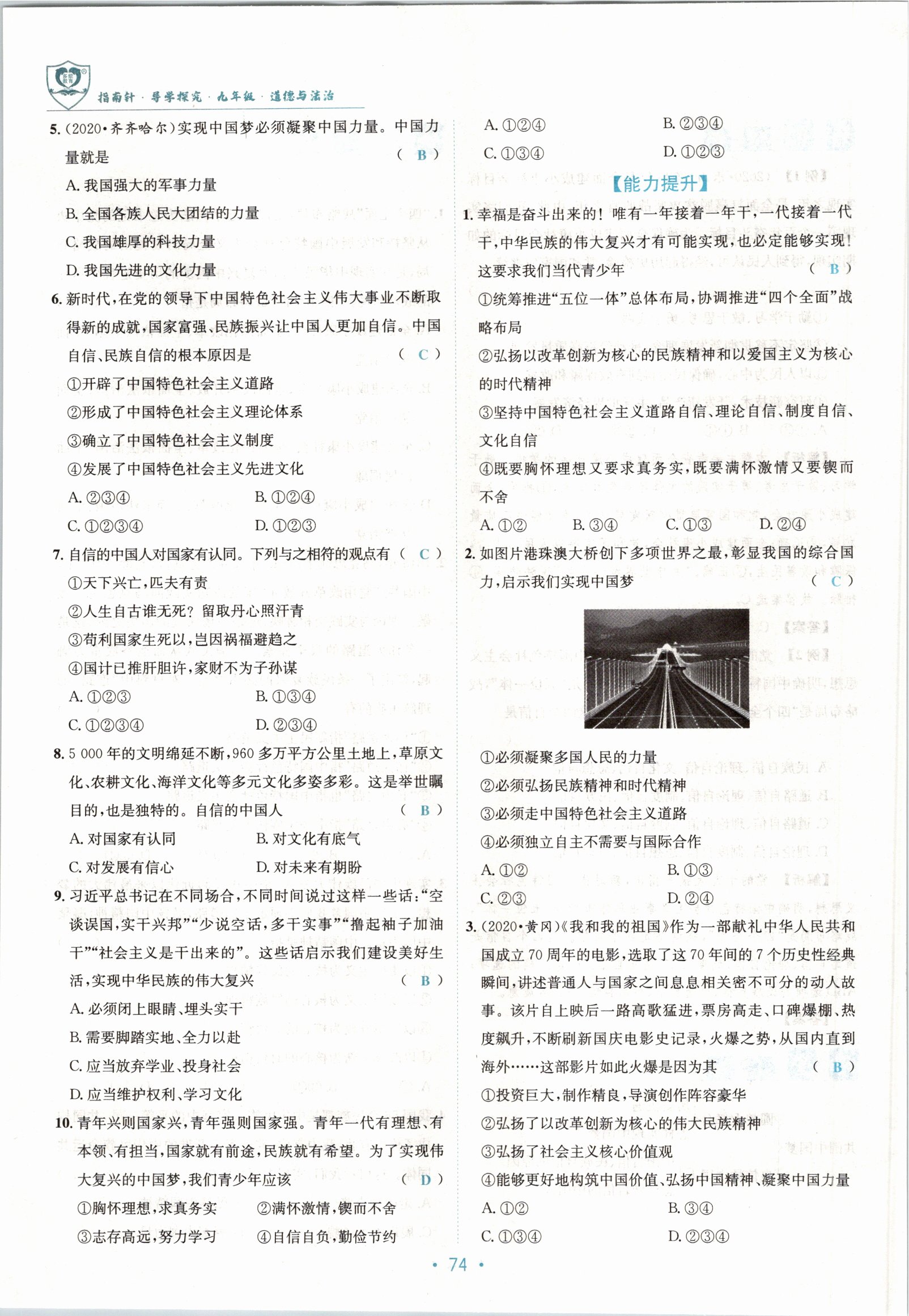 注:目前有些书本章节名称可能整理的还不是很完善,但都是按照顺序排列的,请同学们按照顺序仔细查找。练习册 2022版指南针导学探究九年级道德与法治全一册人教版 答案主要是用来给同学们做完题方便对答案用的,请勿直接抄袭。