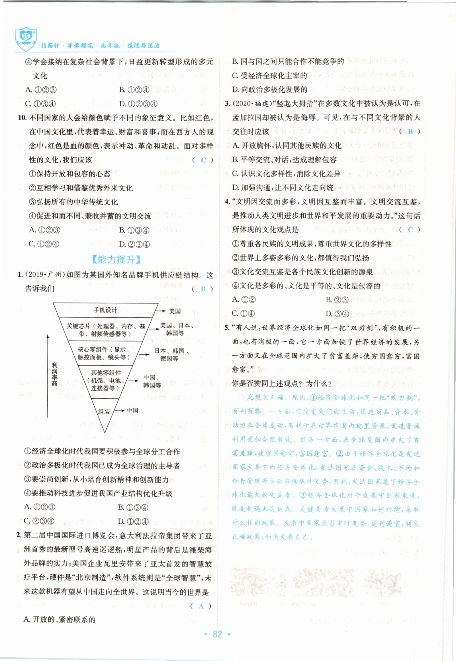 注:目前有些书本章节名称可能整理的还不是很完善,但都是按照顺序排列的,请同学们按照顺序仔细查找。练习册 2022版指南针导学探究九年级道德与法治全一册人教版 答案主要是用来给同学们做完题方便对答案用的,请勿直接抄袭。
