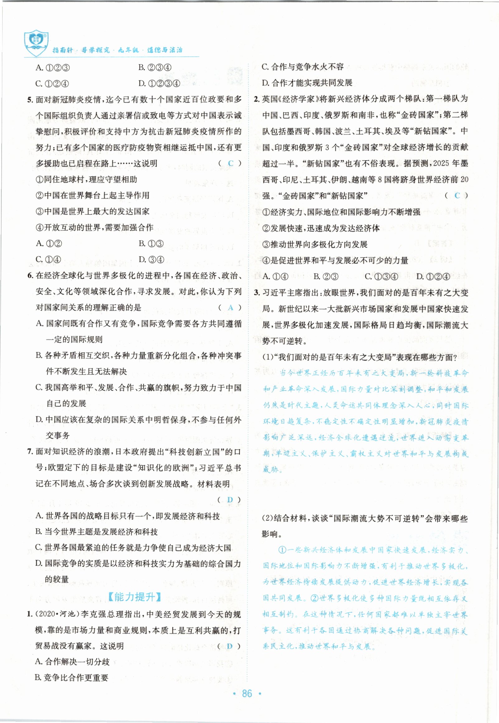注:目前有些书本章节名称可能整理的还不是很完善,但都是按照顺序排列的,请同学们按照顺序仔细查找。练习册 2022版指南针导学探究九年级道德与法治全一册人教版 答案主要是用来给同学们做完题方便对答案用的,请勿直接抄袭。