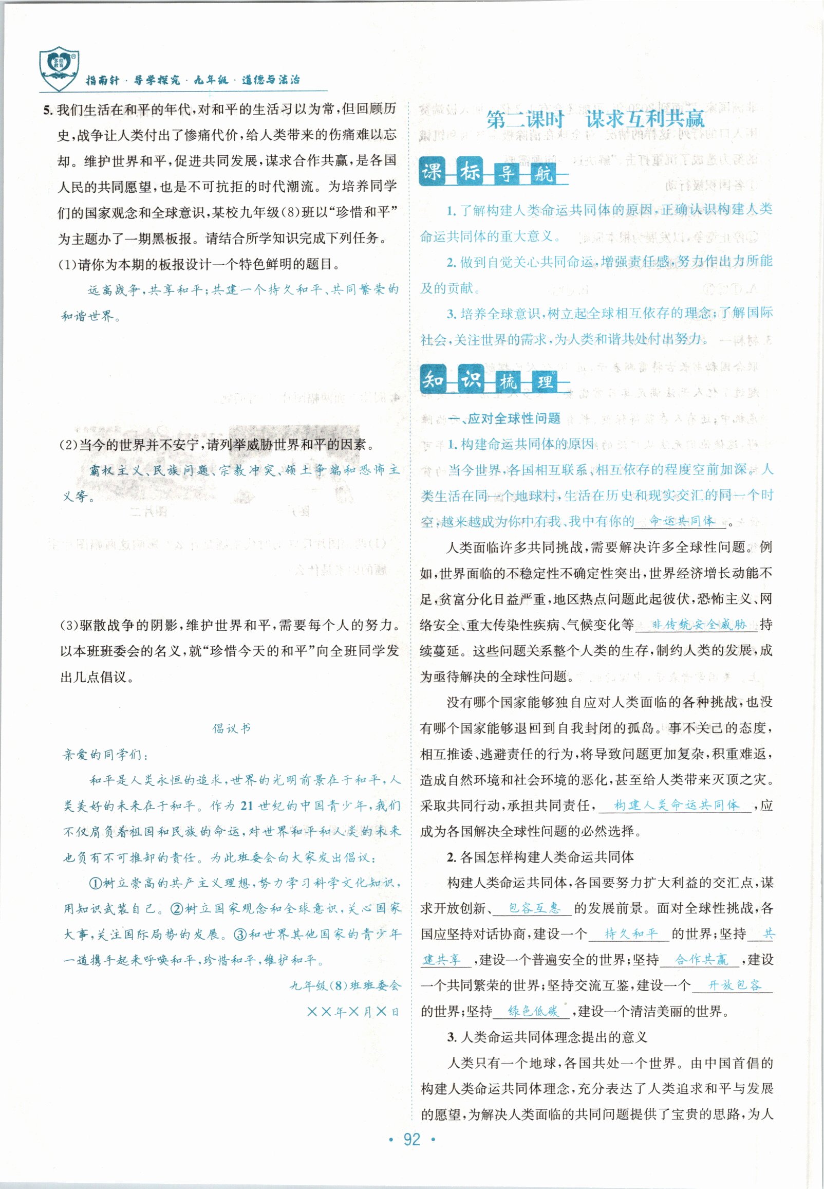 2022版指南针导学探究九年级道德与法治全一册人教版