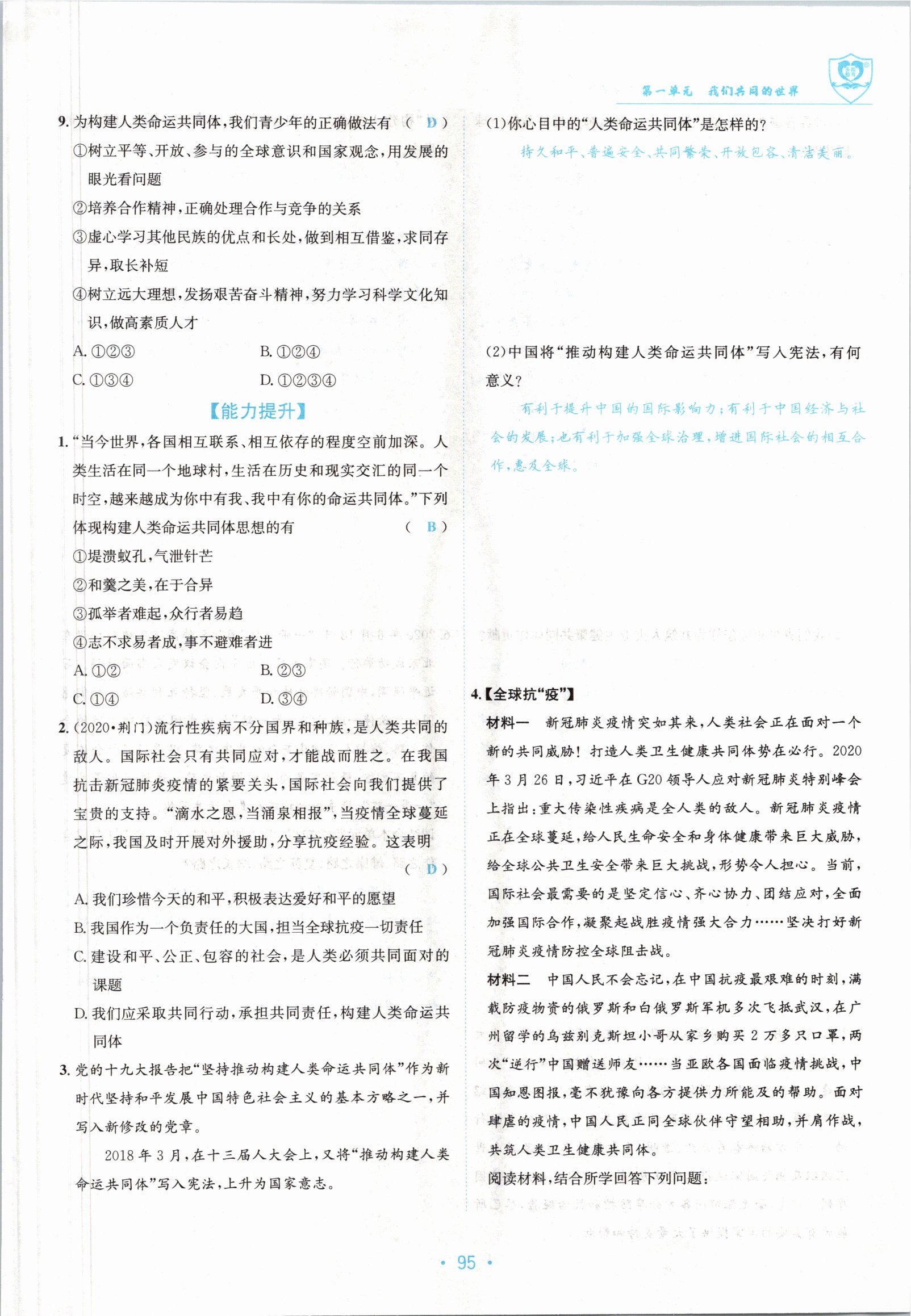 注:目前有些书本章节名称可能整理的还不是很完善,但都是按照顺序排列的,请同学们按照顺序仔细查找。练习册 2022版指南针导学探究九年级道德与法治全一册人教版 答案主要是用来给同学们做完题方便对答案用的,请勿直接抄袭。