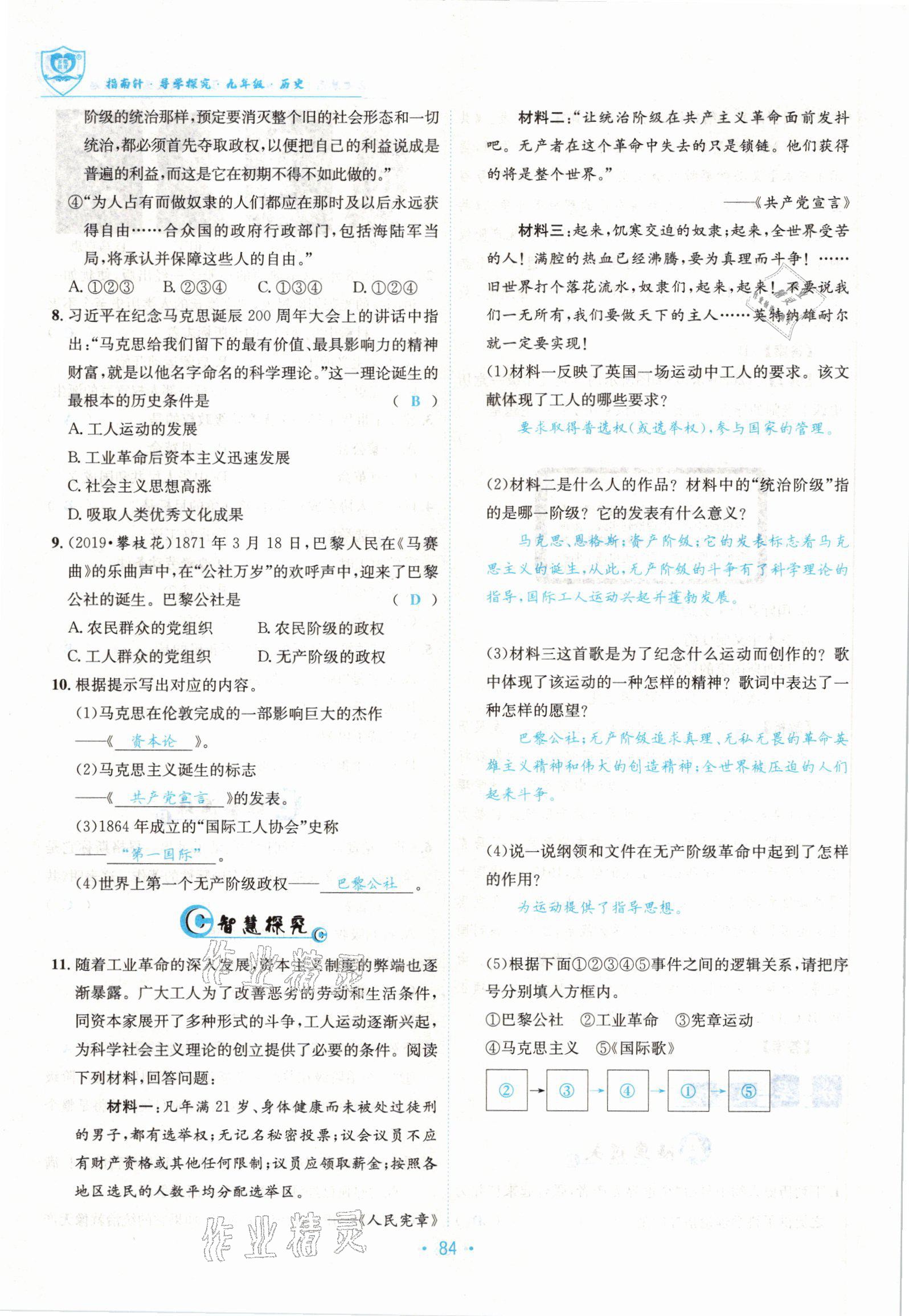 注:目前有些书本章节名称可能整理的还不是很完善,但都是按照顺序排列的,请同学们按照顺序仔细查找。练习册 2022版指南针导学探究九年级历史全一册人教版 答案主要是用来给同学们做完题方便对答案用的,请勿直接抄袭。