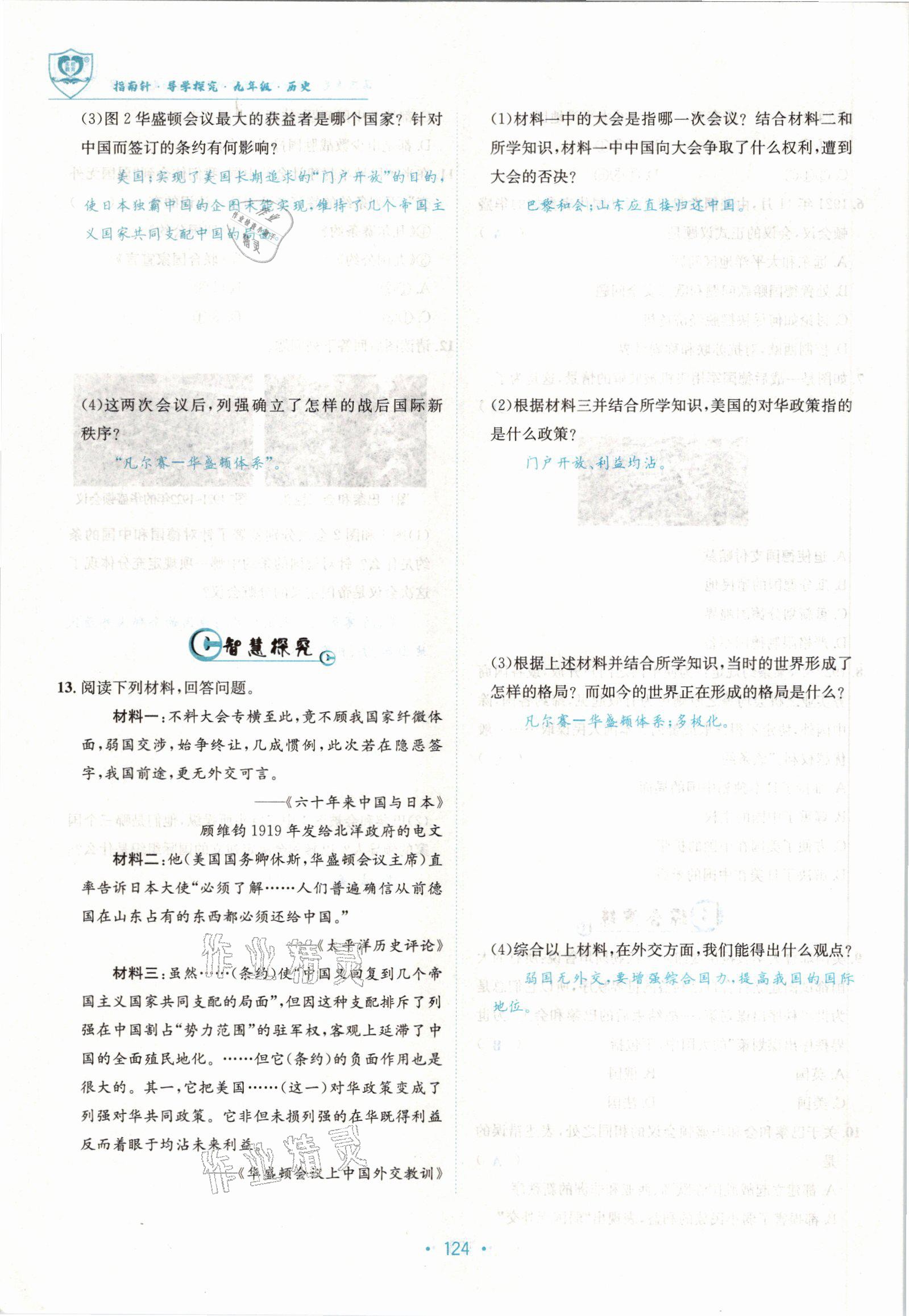 注:目前有些书本章节名称可能整理的还不是很完善,但都是按照顺序排列的,请同学们按照顺序仔细查找。练习册 2022版指南针导学探究九年级历史全一册人教版 答案主要是用来给同学们做完题方便对答案用的,请勿直接抄袭。