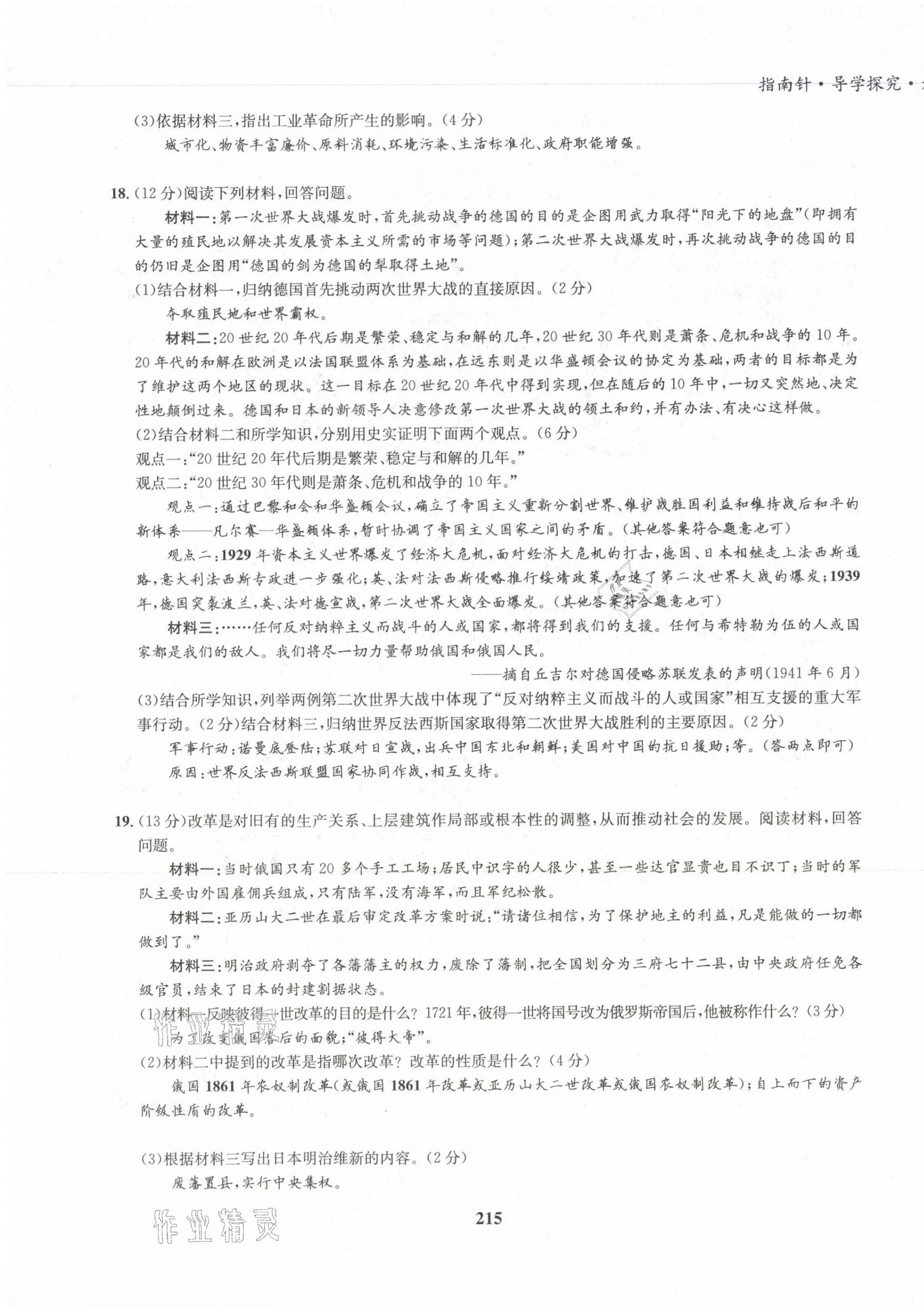 注:目前有些书本章节名称可能整理的还不是很完善,但都是按照顺序排列的,请同学们按照顺序仔细查找。练习册 2022版指南针导学探究九年级历史全一册人教版 答案主要是用来给同学们做完题方便对答案用的,请勿直接抄袭。
