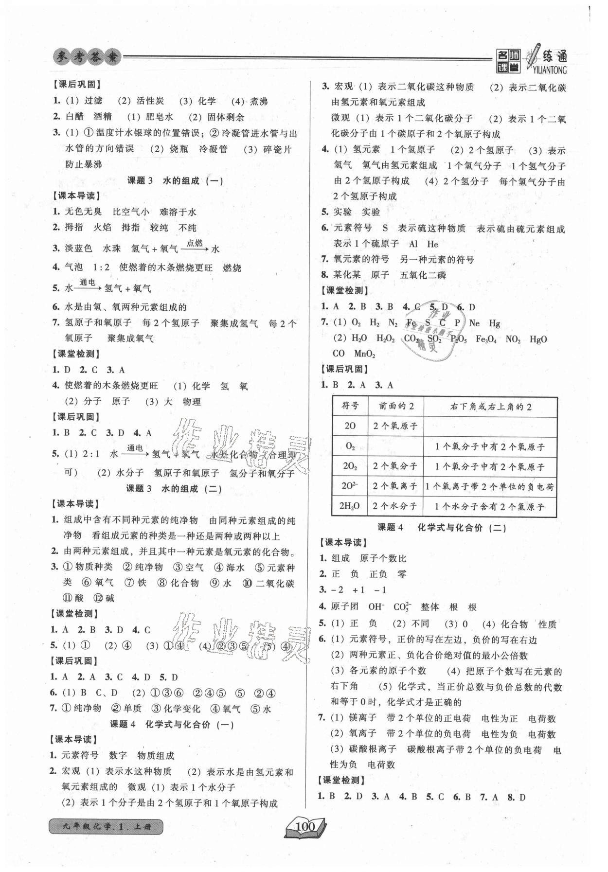 注:目前有些书本章节名称可能整理的还不是很完善,但都是按照顺序排列的,请同学们按照顺序仔细查找。练习册 2021年名师课堂一练通九年级化学上册人教版 答案主要是用来给同学们做完题方便对答案用的,请勿直接抄袭。