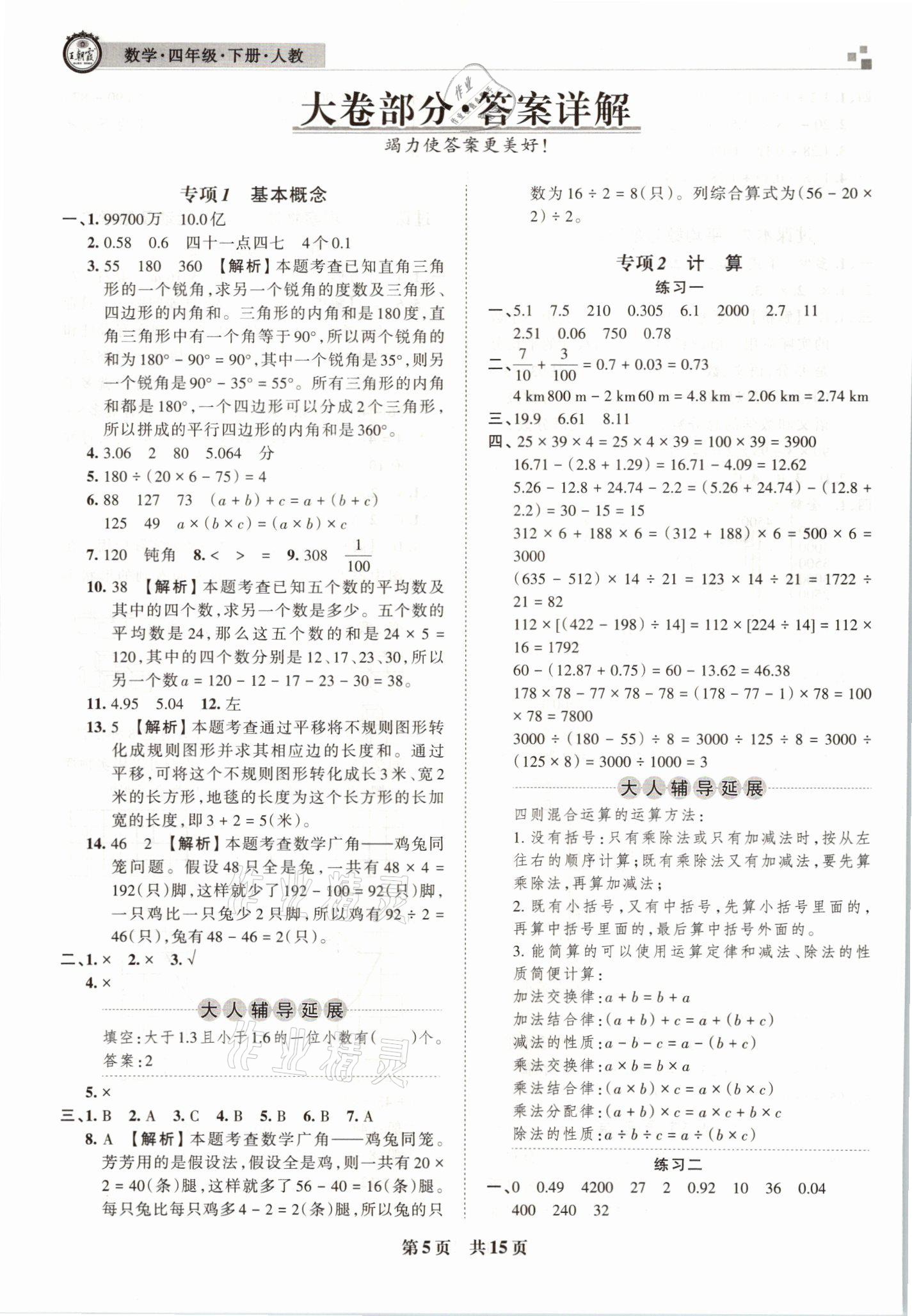 2021年王朝霞期末真题精编四年级数学下册人教版南阳专版